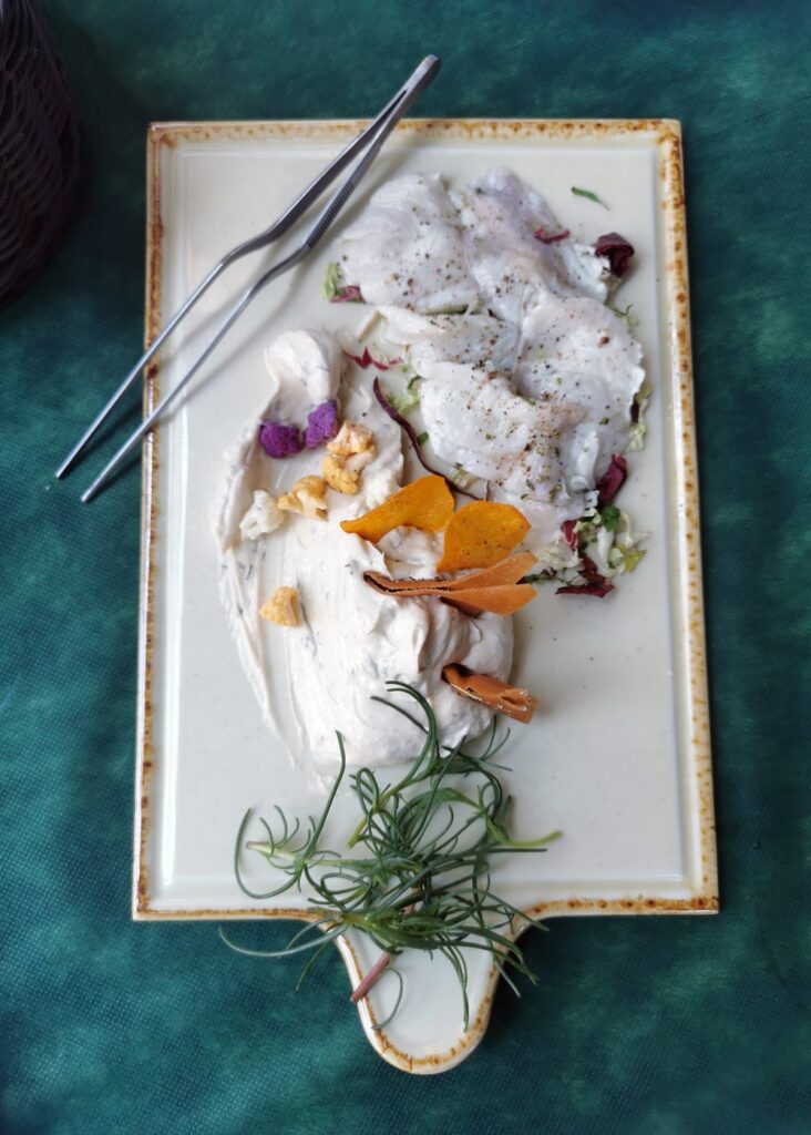 Από τα πιάτα που δοκιμάσαμε αυτή τη φορά, ξεχωρίζω τους κολοκυθανθούς με γαρίδες Κοιλάδας και κολοκυθάκια «γάλακτος», ένα ωμό πιάτο υψηλής τεχνικής, τα ντολμαδάκια με φρέσκο φύλλο, ρύζι, τραχανά και σαρδέλα μαριναρισμένη σκέτο βούτυρο, τον ωμό μπακαλιάρο με γαλάκτωμα σκορδαλιάς και τσίκουδα τουρσί για το απίστευτο επίπεδο ισορροπιών, και το στιφάδο χταποδιού που βάζει τα γυαλιά σε οποιοδήποτε αντίστοιχο των τελευταίων καιρών.