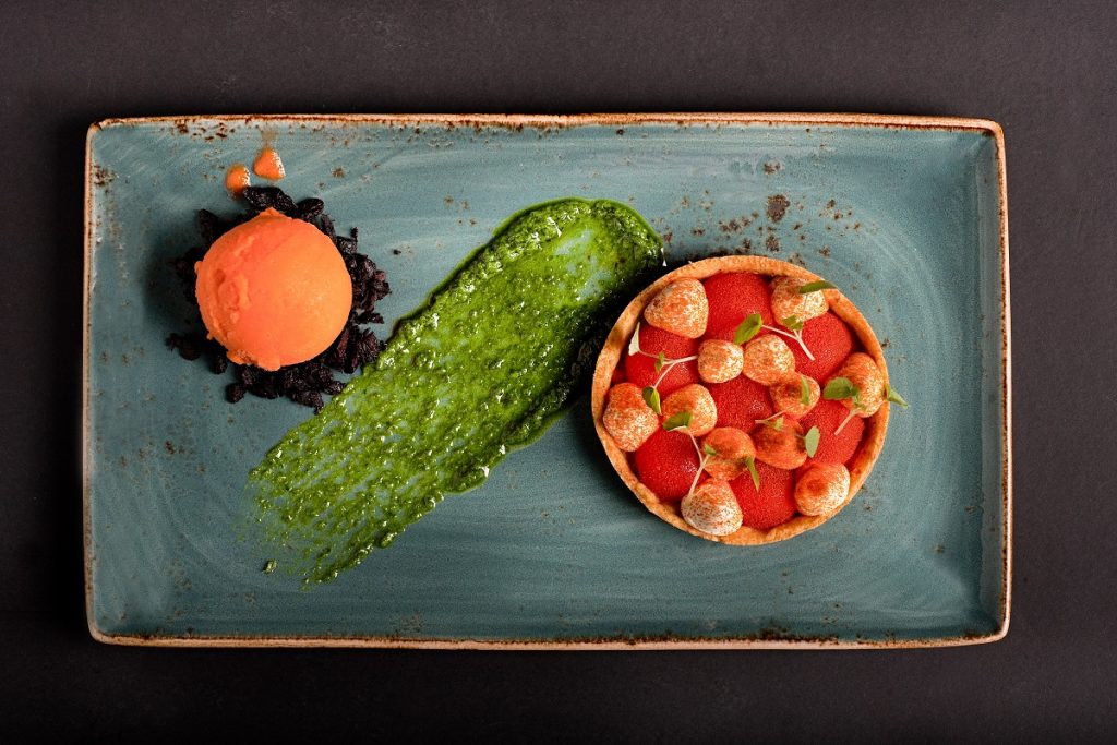Η αρχή έγινε με ένα special Gin Tonic από τα signature του καταλόγου, το Slik Panty, με Tanqueray Ten gin, Lemon Verbena, premium tonic water και grapfruit bitters. Έχει αρκετά και ενδιαφέροντα cocktails η λίστα του Βalthazar, άλλα πιο εξωτικά, άλλα γλυκόξινα, ακόμα και virgin, χωρίς αλκοόλ, οπότε είναι απίθανο να μη βρει κανείς κάτι που να του αρέσει. Σε πολύ λίγο προσγειώθηκε στο τραπέζι μας το πρώτο πιάτο, ένα τρυφερό Καρπάτσιο λαβράκι με αχινό, αυγοτάραχο, passion fruit, ελαιόλαδο και ψημένο προζυμένιο ψωμάκι για βούτες από τα καλύτερα που έχω δοκιμάσει. Υπάρχουν κι άλλα ωραία για ξεκίνημα, όπως η Σαλάτα κινόα με γαρίδες, αβοκάντο και σάλτσα μάνγκο/λάιμ ή μια καλοκαιρινή σαλάτα με καρπούζι, αβοκάντο και φέτα, που έχει όμως και την τσαχπινιά της με την προσθήκη jalapeno, lime και κόλιανδρου. Αυτές τις τσαχπινιές κάνει στο μενού ο αγαπητός κύριος Πέσκιας και τα καταφέρνει πολύ πολύ καλά, ιδιαίτερα το φετινό καλοκαίρι. Από τα πιάτα που θα θυμάμαι για καιρό είναι κι η Τάρτα με κατσικίσιο τυρί και ζελέ ντομάτας, αποξηραμένες ελιές Kαλαμών και sorbet ντομάτας. Νόστιμο, δροσερό, καλοκαιρινό, απλά υπέροχο! Ενδιάμεσα δοκίμασα και 2-3 σούσι, πραγματικά καλά, αλλά αυτό που με εντυπωσίασε ήταν η vegan εκδοχή με Μελιτζάνα-miso, καρότο πίκλα, μελιτζάνα, vegan mayo και σουσάμι!