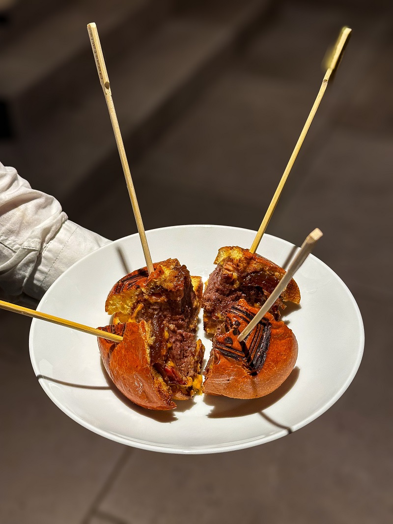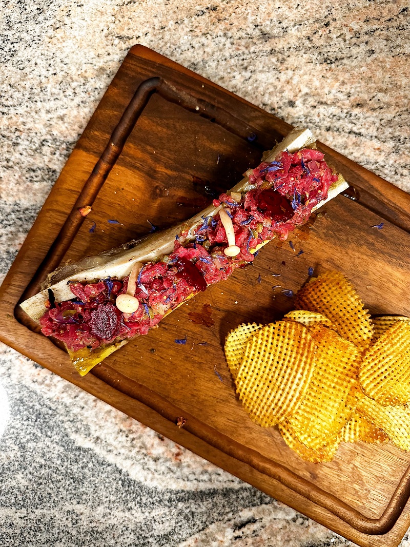 Από τα υπόλοιπα πιάτα που πέρασαν από το τραπέζι μου ξεχώρισα το μοσχαρίσιο ταρτάρ πάνω σε μεδούλι, τα king oyster μανιτάρια με μους αβοκάντο αλλά και τη γλυκοπατάτα με τσαλαφούτι και φρέσκια τρούφα. Από τις κοπές, οι οποίες έφτασαν ψημένες στην εντέλεια, δοκίμασα το ντελικάτο μοσχαρίσιο φιλέτο Black Angus και το πιο πληθωρικό rib-eye bone in της ίδιας ράτσας, ενώ δε θα μπορούσα να προσπεράσω το «the beast burger», για το μπιφτέκι του οποίου ο σεφ έχει κατακτήσει το πρώτο βραβείο γεύσης στο World Butcher Challenge. Φτάνει ζουμερό μόνο με τσένταρ, μπέικον και καραμελωμένο κρεμμύδι.