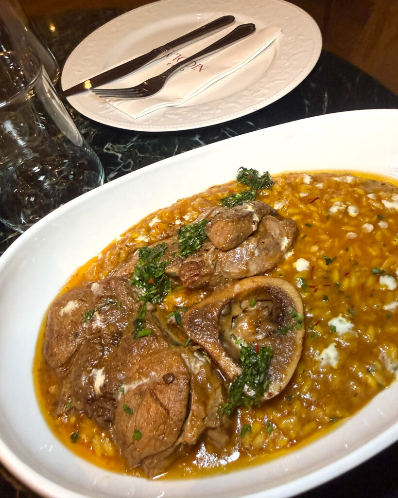 Γη και θάλασσα εναλλάσσονται στα κύρια πιάτα με συνθέσεις σαν το ψάρι ημέρας με σάλτσα βουτύρου, λεμόνι ,κάπαρη και πατάτες ,ένα κοτόπουλο Alfredo με παρμεζάνα και νιόκι, αλλά και το πληθωρικό Ossobuco alla Milanese με μοσχαρίσιο κότσι και γκοργκοντζόλα. Απρόσμενα νόστιμο και ισορροπημένο στα επιμέρους στοιχεία του το Τιραμισού, που κλείσαμε το δείπνο μας.