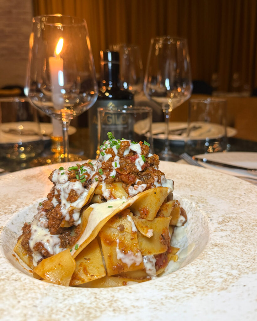 Τα ζυμαρικά και τα risotti δεν λείπουν φυσικά από το Casa Nicola. Κλασικές προτάσεις σαν τις Pappardelle Bolognese, με ένα μοσχαρίσιο ραγού σιγομαγειρεμένο για 8 ώρες µε San Marzano και κρέμα pecorino, η τα rigatoni Cacio e Pepe με ήπιας έντασης pecorino Romano που είχαν μια αστοχία στην δημιουργία της πολυπόθητης κρέμας, ένα risotto Milanese με γκοργκοντζόλα και σαφράν.