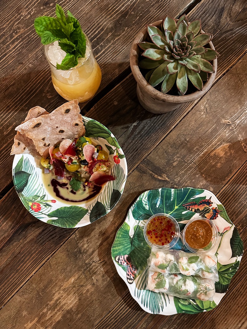 Το μενού περιλαμβάνει μια σειρά από άκρως δημιουργικά πιάτα που καλύπτουν πολλά γευστικά γούστα – από όστρακα και σεβίτσε μέχρι dumplings και ολόκληρες πανσέτες, οι οποίες σιγομαγειρεύονται για ώρες. Στα πιάτα που τίμησαν το τραπέζι μας βρίσκονταν και τα δροσερά vietnamese rice paper rolls με γαρίδες, ψιλοκομμένο κοτόπουλο και φρέσκα λαχανικά που σερβίρονταν με σως από φυστικοβούτυρο καθώς και πικάντικη σως με τσίλι.