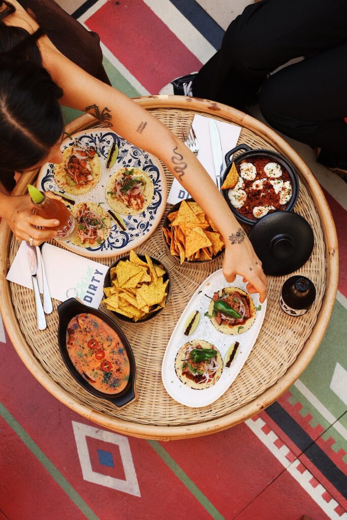 Ο βραβευμένος mixologist Μανώλης Λυκιαρδόπουλος υπογράφει την λίστα ποτών των δύο μπαρ του Dirty Sanchez, προσφέροντας στους επισκέπτες μια εκτενή λίστα κοκτέιλ, ανάμεσά τους και το Rise the Sun με τεκίλα Cazadores, citrus mix cordial, γρεναδίνη από κόκκινες πιπεριές και σόδα μανταρίνι, το Perfect Patron Tequini με τεκίλα patron silver, γαλλικό βερμούτ, ελιές και λεμόνι, καθώς και η Spicy Mandarin margarita με τεκίλα Cazadores, πικάντικο agave σιρόπι, μανταρίνι, λάιμ και γλυκιά και καπνιστή πάπρικα. Η κουζίνα, υπό την επιμέλεια των σεφ Σπύρου Μαυροειδή και Χρήστου Μανουσόπουλου, προσφέρει ένα γευστικό μενού που απαρτίζεται από πληθωρικά nachos, φρέσκα και πικάντικα ωμά πιάτα, δροσερές σαλάτες, πλούσια ορεκτικά, πληθωρικά κυρίως πιάτα και tacos καθώς και λαχταριστά επιδόρπια. «Εμπνευσμένοι από τα πολύχρωμα και εντυπωσιακά χρώματα, τη μεγάλη ποικιλία υλικών αλλά και την οικειότητα που προσφέρει η μεξικανική κουζίνα και κουλτούρα, δημιουργήσαμε ένα comfort menu από το οποίο ωστόσο δεν λείπουν οι εντάσεις», λέει ο Σπύρος.