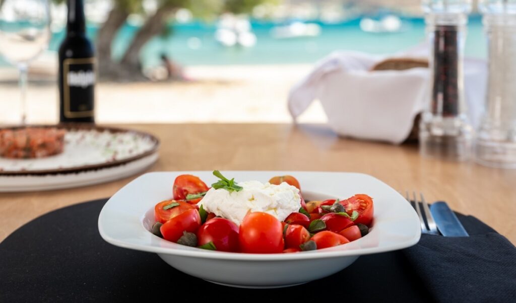 Από εποχιακά σαλατικά και λαχανικά παραγωγής τους και κρύα και ζεστά ορεκτικά, όπως μπρουσκέτες με θαλασσινά ή ντοματοκεφτέδες μέχρι φρέσκα ψάρια και θαλασσινά, που φέρνουν καθημερινά τα καΐκια του νησιού. Ακόμη, υπάρχουν αρκετές επιλογές σε ζυμαρικά που συνδυάζονται με προϊόντα της θάλασσας, όπως η γαριδομακαρονάδα με αυγοτάραχο Μεσολογγίου ή τα θαλασσινά με πέννες. Οι λάτρεις του κρέατος  θα βρουν και μερικές προτάσεις όπως τα σουτζουκάκια, το μοσχάρι λεμονάτο ή το κοτόπουλο φιλέτο, ενώ για τους γονείς με παιδιά, προσφέρεται και παιδικό μενού.