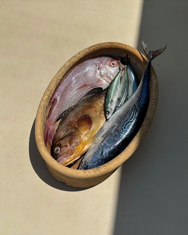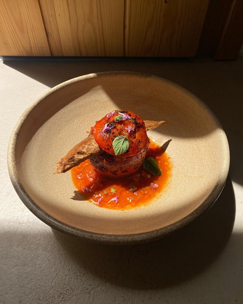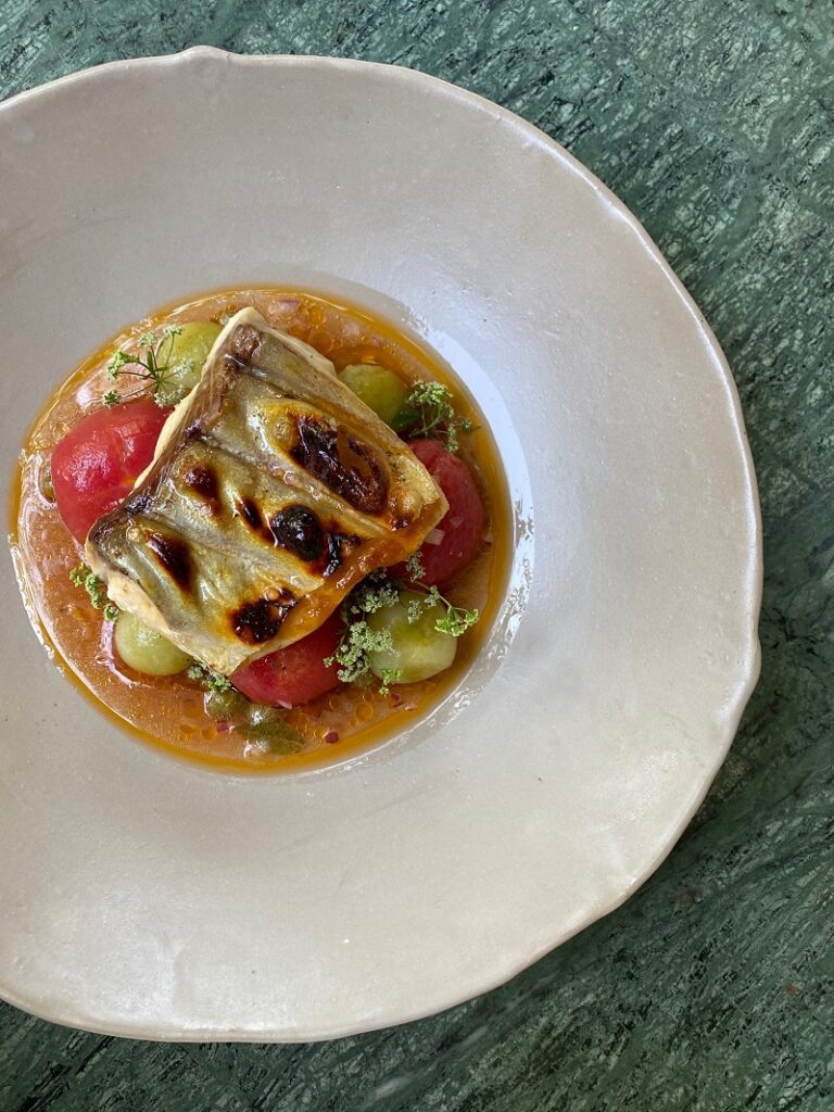 Δοκίμασα πιάτα με zero waste προσέγγιση και ξαναθυμήθηκα την απτή γεύση της μελιτζάνας, του ροφού  αλλά και την αψάδα της άγουρης ντομάτας. Η μαγειρική του Ουριέλ είναι ακριβής και αυτό σπανίζει, ειδικά στα νησιά. Με τα χέρια του γεμάτα τατουάζ με φυτά, βότανα και λουλούδια και την καθαρή ματιά του, τα κεραμικά πιάτα μυρίζουν μάραθο, κρεμμύδι, εξαιρετικό παρθένο ελαιόλαδο και ψάρι. Η κουζίνα «ακούει» την φύση και το κύμα. Κάθε γεύση έχει νόημα, κάθε μπουκιά χαρακτήρα.