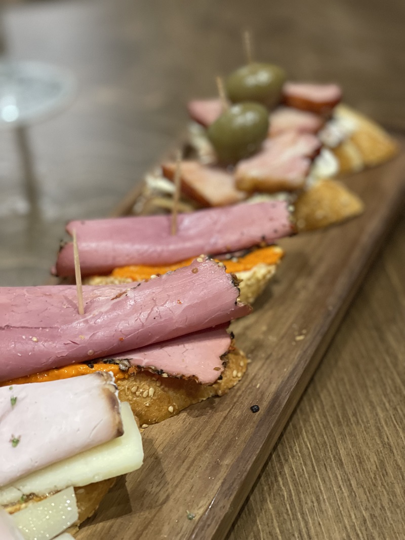 Σε αυτό τον προζυμένιο καμβά ο Νίκος βάζει πότε σαρδέλες με κρέμα τυριού, πότε καπνιστό μύδι με μουστάρδα (από αυτό να δοκιμάσετε οπωσδήποτε), πότε παστράμι με πιπεριά Φλωρίνης και καραμελώμενα κρεμμύδια και πότε γραβιέρα με καπνιστό χοιρινό και χειροοποιήτο τσάτνεϊ μήλου (λίγο γλυκό για τα γούστα μου). Κάνει και άλλα όμως, ανάλογα με την φρέσκια πρώτη ύλη που βρίσκει. Κάνει, επίσης και πιάτα, που είναι της φιλοσοφίας του share και μπαίνουν στη μέση του τραπεζιού. Από αυτά δεν δοκίμασα κάτι για να σας πω, μιας και ο λόγος που πήγα ήταν τα aperitivi και τα cicchetti – την επόμενη όμως σίγουρα θα δοκιμάσω δύο, τρία πιάτα, που έχω ήδη βάλει στο μάτι.