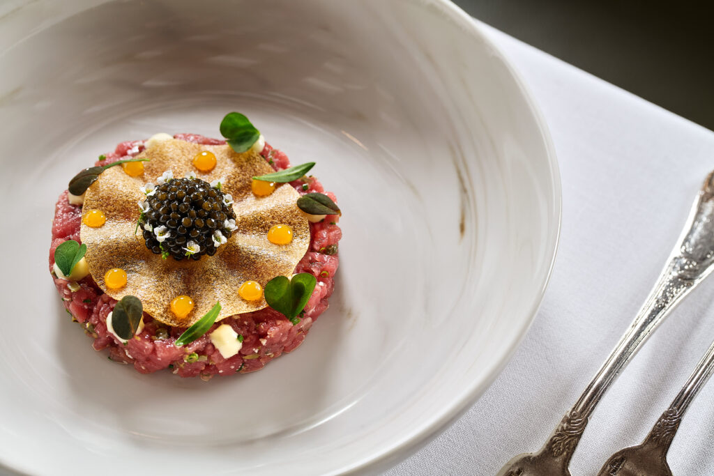 Είχε προηγηθεί το ταρτάρ μόσχου με κρόκο αυγού κονφί, μαγιονέζα αγριοράπανου, απαλή Dijonnaise, τυρί Rezzana από το ίδρυμα Τοσίτσα, χαβιάρι και ένα τραγανό πέπλο από πατάτα. Πόσο λαχτάρησα εκείνη την ‘’στακάτη’’ κάψα της μουστάρδας Dijon που θα χτυπούσε κατευθείαν τους γευστικούς κάλυκες του ουρανίσκου. Ήταν το μοναδικό μου ”γιατί” σε μια πολύ νόστιμη σύνθεση. Μια τυπική λευκή Βουργουνδία, όξινη και ορυκτή ταίριαξε τα μέγιστα με το καλοδουλεμένο κρεάτινο πρώτο πιάτο.