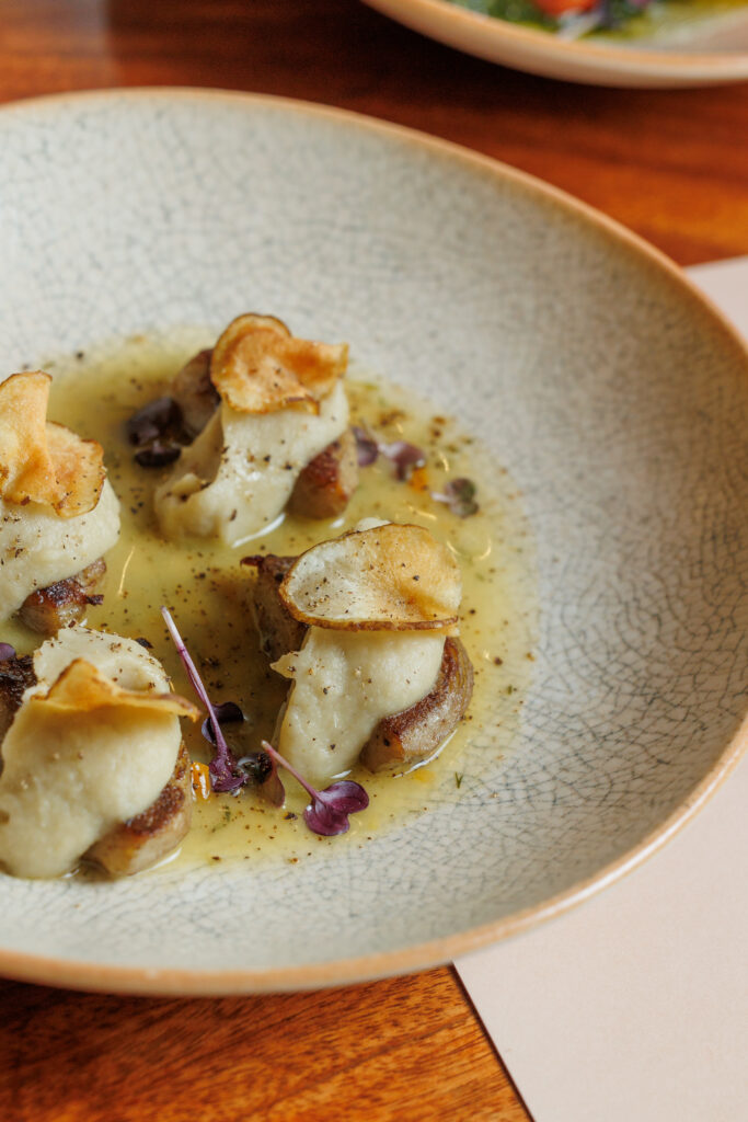 Από τα ορεκτικά, αξίζει δοκιμάσετε τη σιφνιώτικη ρεβυθάδα. Σερβίρεται με μαριναρισμένο γαύρο και φιλέτο πορτοκαλιού, δύο συστατικά που κάνουν ένα χειμωνιάτικο όσπριο να νιώθεις ότι μπορεί να κυκλοφορεί όλο τον χρόνο χωρίς να χάνει την ταυτότητά του. Το τζατζίκι μαύρου σκόρδου, συνοδευόμενο από πίκλα αγγουριού και κροστίνι, είναι μια υπόμνηση για το πόσο μπορεί να αλλάξει ένα κλασικό με μία μόνο αντικατάσταση.
