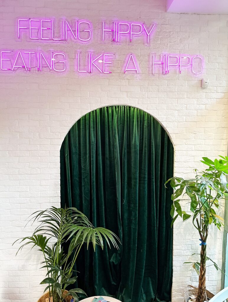 “Feeling Hippy, Eating Like a Hippo” ανακοινώνει η φωτεινή επιγραφή στο εσωτερικό του μαγαζιού και είναι αυτό ακριβώς που προσφέρει το Hippy Hippo στους θαμώνες του – ανέμελη διάθεση, κουλτουριάρικη εμφάνιση, και ποιοτικό, απόλυτα νόστιμο φαγητό. Ναι! – οι ιπποπόταμοι τρώνε άκρως ποιοτικό φαγητό, κυρίως χόρτα και φρούτα, και καταναλώνουν καθημερινά ποσότητα φαγητού λιγότερη από το 1% του βάρους τους. Το Hippy Hippo είναι από τα μαγαζιά που σε κερδίζουν από την πρώτη κιόλας επίσκεψη.