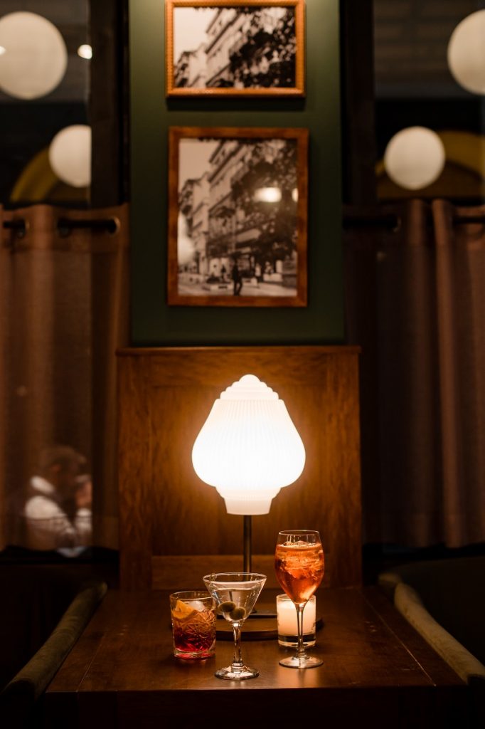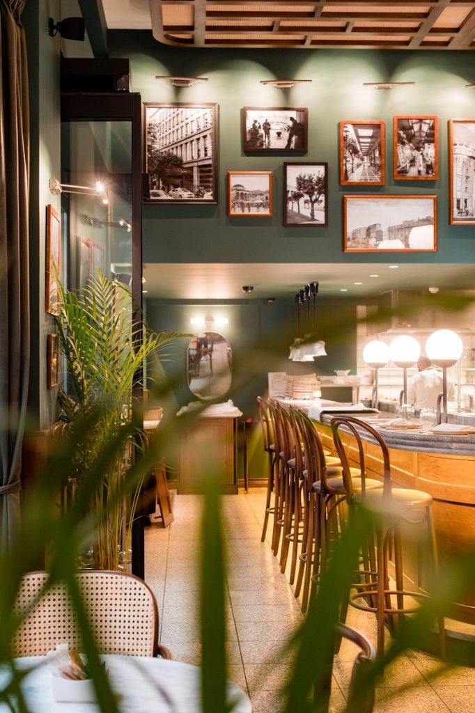 Το σκηνικό φέρνει στο νου μνήμες κλασικού ελληνικού καφενείου ή/και ευρωπαϊκού μπιστρό, με πολλές ασπρόμαυρες φωτογραφίες από γειτονιές της πόλης στους τοίχους, πολυθρόνες ντυμένες με βιενέζικη ψάθα, μαρμάρινα τραπέζια και όμορφο φωτισμό. Οι Θεσσαλονικείς Urban Soul Project, υπεύθυνοι για το ντεκόρ, καταφέρνουν να μεταφέρουν στο χώρο την αίγλη της παλιάς Αθήνας και να συνδέσουν το χτες με το σήμερα με τρόπο αριστοτεχνικά κομψό χωρίς υπερβολές. Η ανοιχτή κουζίνα με το μπαρ φαγητού μπροστά της υποδέχεται με αβρότητα και ειλικρίνεια τον επισκέπτη, ενώ το μπαρ δίπλα της δίνει μια ωραία συνέχεια στο μάτι και δημιουργεί τις καλύτερες προϋποθέσεις για μια πιο ζωντανή βραδιά. Για όσους θέλουν να βρίσκονται μέσα στην περατζάδα της στοάς υπάρχει φυσικά και το ξύλινο ντεκ με τα μεγάλα φυτά και τις πέργκολες, που ναι μεν σε προστατεύουν από τα αδιάκριτα βλέμματα των περαστικών, αλλά σου αφήνουν και το περιθώριο να μη χάνεις τα δρώμενα που συμβαίνουν τριγύρω.