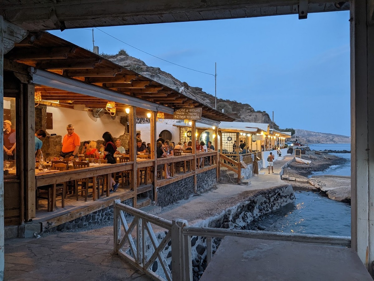 Ιστορία: Η ιστορία της Σπηλιάς του Νικόλα ξεκινά πίσω στο 1967, όταν ο Νικόλας Αλεφραγκής με τη βοήθεια τη συζύγου του μετατρέπει τη σπηλιά που χρησιμοποιούσε για καταφύγιο της βάρκας του σε ταβερνάκι, με πρώτους πελάτες τους φίλους του και τους ανθρώπους που δούλευαν στην ανασκαφή του Ακρωτηρίου, υπό τον καθηγητή Σπύρο Μαρινάτο. Στη συνέχεια πέρασε στα χέρια της κόρης του Μαργαρίτας,