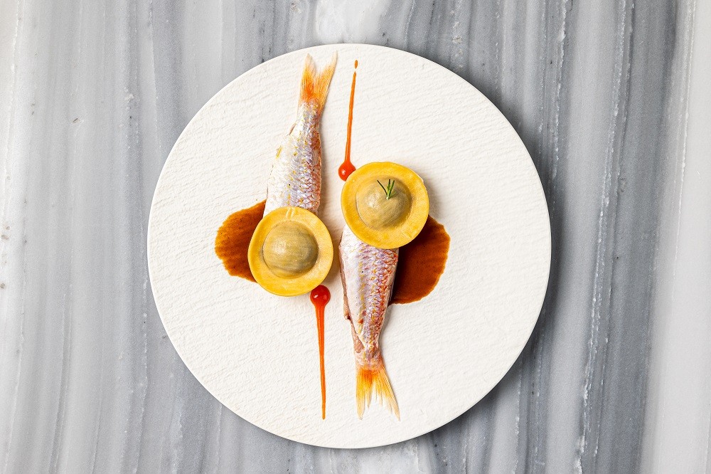Για μένα το κορυφαίο πιάτο ήταν ο ψητός αστακός με άρωμα καφέ και το γεμιστό με ταρτάρ του αστακού κανελόνι, φιστικοβούτυρο και κρέμα μπεσαμέλ που έρχεται μαζί με μια βινεγκρέτ ιβίσκου. Δυστυχώς, όμως, η διπλή οξύτητα της κόκκινης βινεγκρέτ κοντράριζε τον αστακό και διέψευδε τα περί «διακριτικών τόνων» που ευαγγελιζόμουν. Οπότε, μοιραία, στην πρώτη θέση των προτιμήσεών μου βρέθηκε το πιο μεσογειακό μπαρμπούνι με παστουρμά, berlingots (τετράεδρα) βοτάνων με γέμιση μους από καπνιστό χέλι και σάλτσα δεντρολίβανο, που κατάφερνε να παντρέψει τη θάλασσα με τα μπαχάρια του παστουρμά και τα βότανα, προβάλλοντας τον φίνο χαρακτήρα του ψαριού.