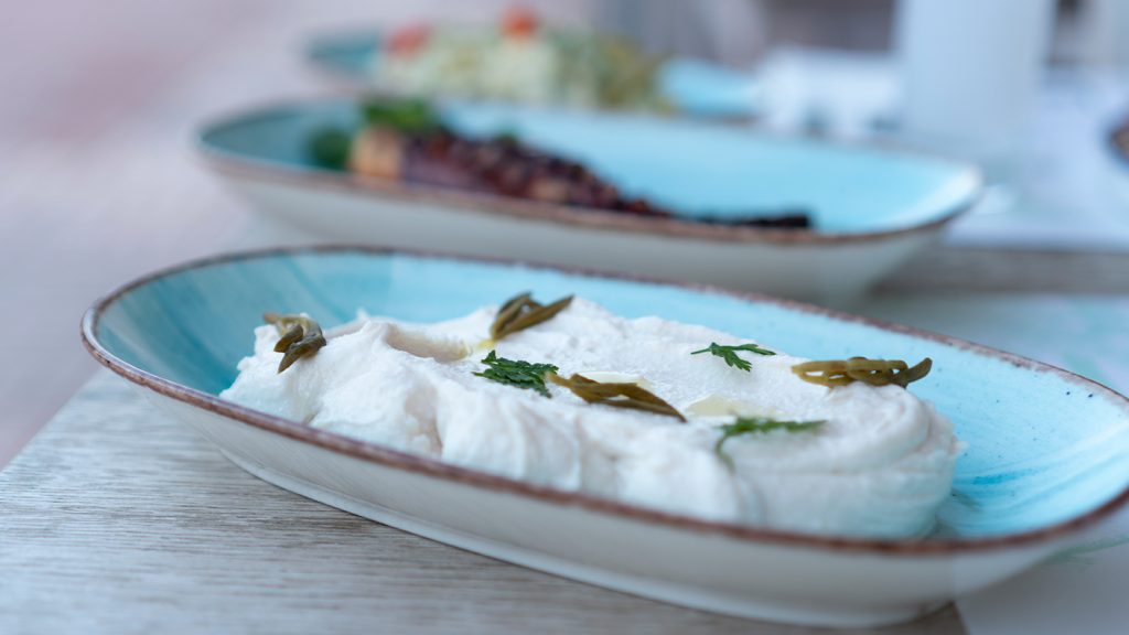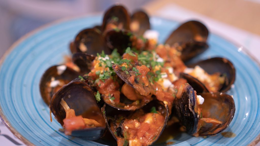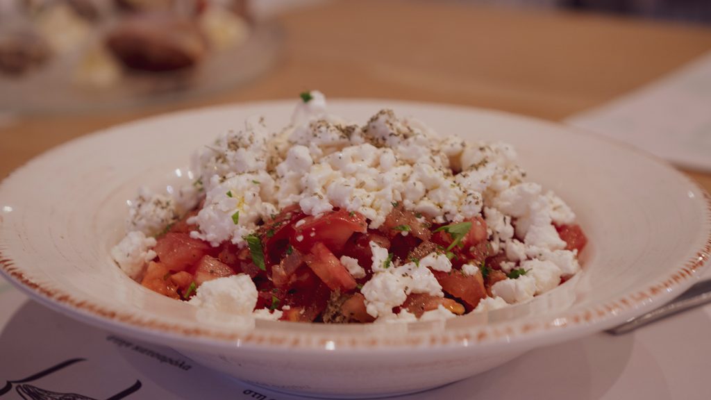 Μας υποδέχτηκαν με ζυμωτό προζυμένο ψωμί που συνοδεύεται από πελτέ ντομάτας και μαριναρισμένο λούτσο πάνω σε φρυγανισμένο ψωμί, δύο νόστιμες μπουκιές που έδωσαν το σύνθημα για την «παρέλαση» μεζέδων που ακολούθησε. Λευκή ταραμοσαλάτα σαν πλούσια κρέμα, νόστιμη Φάβα Φενεού σερβιρισμένη παραδοσιακά με ψιλοκομμένο κρεμμύδι και καλά ξαρμυρισμένη κάππαρη και αχινός σερβιρισμένος σε μπολάκια με φέτες λεμόνι και γεύση θάλασσας σε κάθε μπουκιά! Πολύ ευχάριστη έκπληξη η δική τους εκδοχή ντάκου, που ουσιαστικά είναι κυρίως ντοματοσαλάτα με παξιμαδάκια και μπόλικη φέτα. Το μυστικό της νοστιμιάς της όμως βρίσκεται στο γεγονός ότι η ντομάτα είναι καπνιστή (ναι, έχει την ίδια ευχάριστη γεύση καπνιστού όπως η μελιτζανοσαλάτα) ενώ η φέτα είναι ελαφρώς γκραντιναρισμένη, δίνοντας τον πιο ενδιαφέρον ντάκο που έχουμε δοκιμάσει τα τελευταία χρόνια.