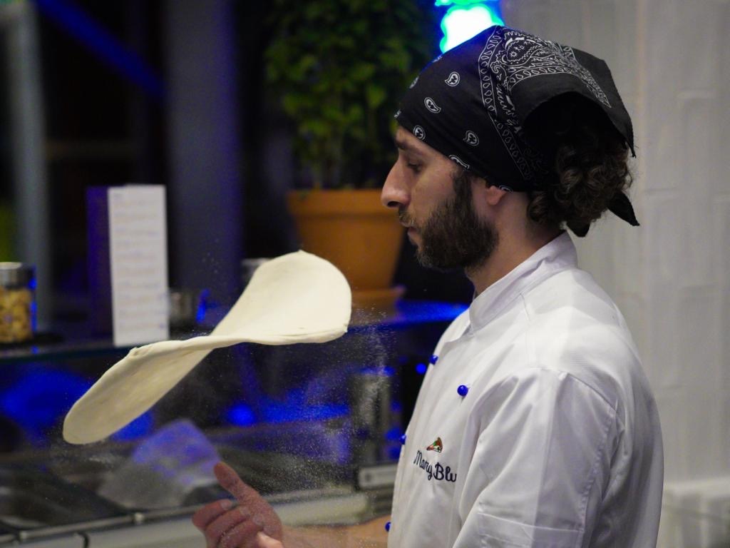 Χρώματα και αρώματα Ιταλίας επικρατούν στο μενού του Mamy Blue που επιμελείται ο executive σεφ Κώστας Μεριανός. Εμπνευσμένος από αυθεντικές συνταγές της γειτονικής μας χώρας, «έχτισε» έναν κατάλογο με ορεκτικά, φρέσκιες σαλάτες, πιάτα με pasta και pizza, στην οποία δίνεται ξεκάθαρη έμφαση. Το ζυμάρι, που γίνεται βάση για την pizza του εστιατορίου, ωριμάζει για 36 με 48 ώρες. Ανοίγεται σα μεγάλη ρόδα κάρου και στολίζεται με διαφόρων ειδών καλούδια πριν κάνει την είσοδό του στον ξυλόφουρνο για να ψηθεί σε θερμοκρασία 450-500° C.