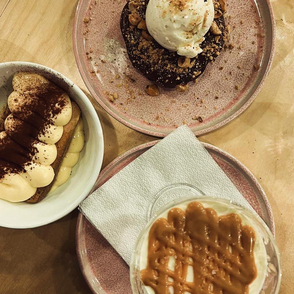 Ανάμεσα στα επιδόρπια ξεχωρίζουμε τη ζεστή τάρτα al cioccolato με παγωτό βανίλια και φουντούκι και την panacotta με γρανίτα καραμέλα.