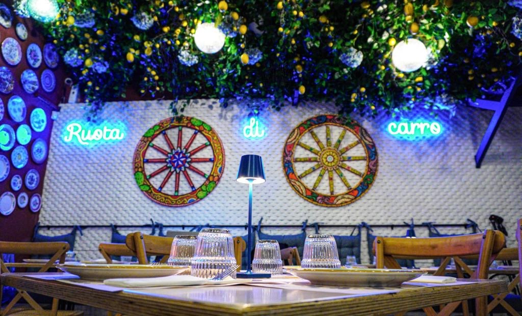 Το Mamy Blue έκανε την εμφάνιση του σε μια πολυσύχναστη γωνιά της Άνω Γλυφάδας -εκεί που η οδός Ανδρέα Παπανδρέου συναντάει την Βασιλίσσης Όλγας- στα τέλη της προηγούμενης χρονιάς. Διακοσμημένη με λεμονιές, ορτανσίες και κεραμικά pots με φρέσκους βασιλικούς, η σάλα του εστιατορίου μοιάζει με σπιτική αυλή, αποκομμένη από τη βοή και τους γρήγορους ρυθμούς της πόλης. Το βλέμμα τραβούν ο χτιστός ξυλόφουρνος και οι τοιχογραφίες μιας από τις μεγαλύτερες ντίβες του ιταλικού κινηματογράφου, της Σοφίας Λόρεν καθώς και του Ντιέγκο Μαραντόνα, του Αργεντινού θρύλου των γηπέδων που δήλωνε για χρόνια ως έδρα του τη ζωηρή Νάπολη.