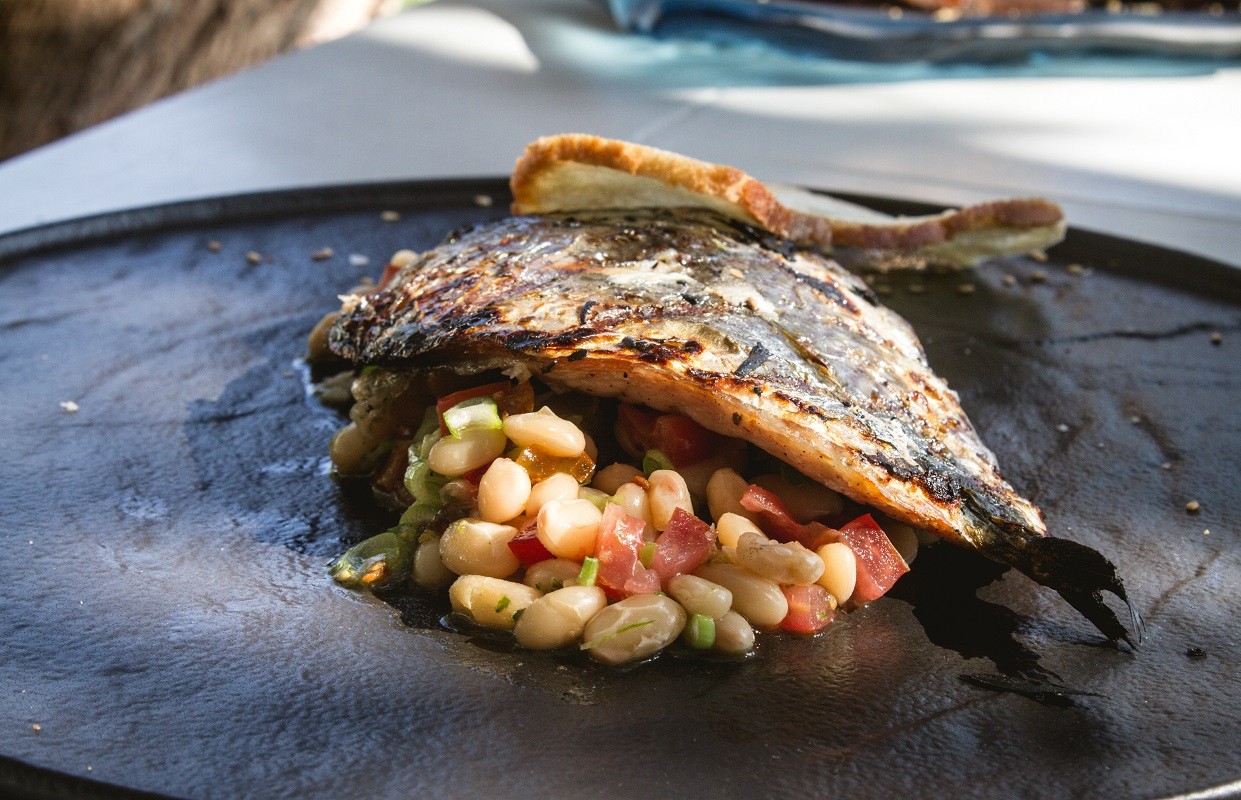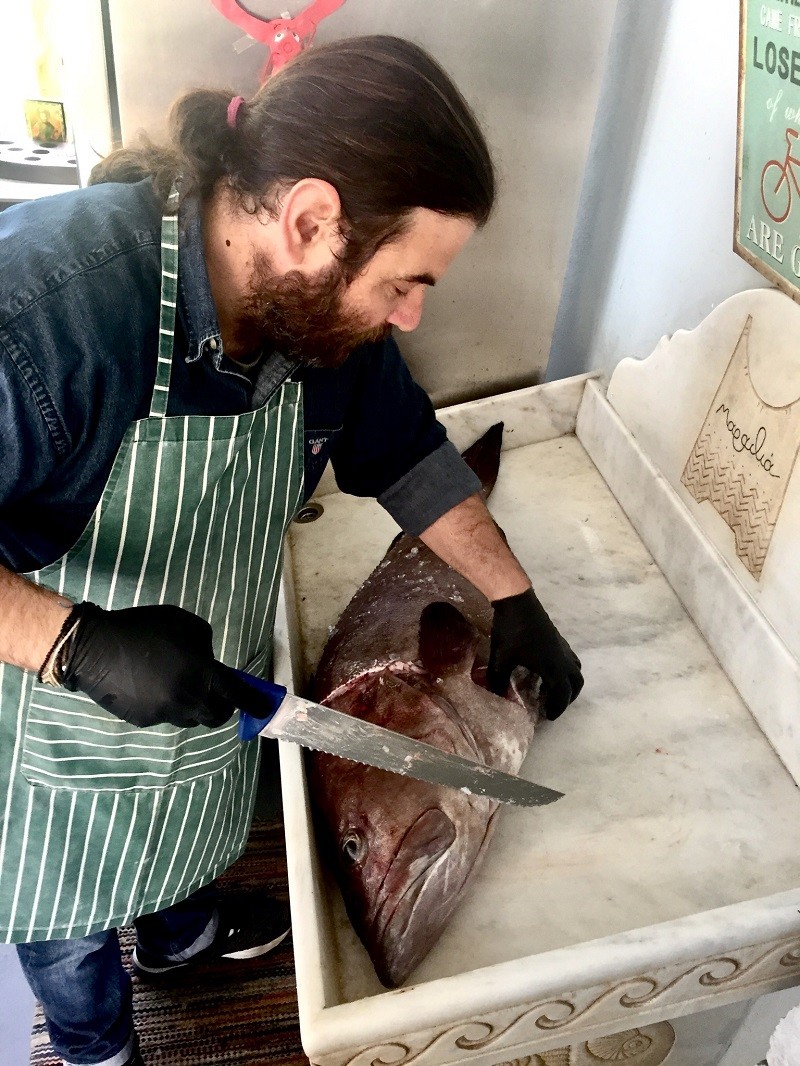 Οσο, όμως, και αν σεβάστηκε την παράδοση, δεν κόλλησε σε αυτή. Φρόντισε να την αποδώσει με τον δικό του τρόπο, χρησιμοποιώντας σύγχρονες μαγειρικές τεχνικές και εναρμονίζοντάς την έτσι με την εποχή μας. Σήμερα θα έλεγα ότι τα κεντρικά θέματα της κουζίνας του εστιατορίου αυτού είναι δύο: τα ψάρια και τα ντόπια τυριά. Αλλά όχι έτσι απλά. Ναι, μεν στη Μαραθιά μπορείς να φας φρεσκότατο ψάρι, αλλά ο Μαρίνος Σουράνης έχει και αντιπρόταση: να δοκιμάσουμε τα ψάρια που ωριμάζει ή «καρυκεύει», όπως λέει ο ίδιος, στο ειδικό ψυγείο ξηρού σιτέματος ψαριών (dry-aging) –όπου τα ψάρια ωριμάζουν ή σιτεύουν, όπως θα λέγαμε παλιότερα– σε αυστηρά ελεγχόμενους βαθμούς θερμοκρασίας και υγρασίας. Στη συνέχεια μαζί με τον ταλαντούχο σεφ της Μαραθιάς, τον Στέφανο Μαραγκό, τα προτείνουν σε διάφορες παρασκευές που αναδεικνύουν τα αποτελέσματα αυτής της ωρίμανσης μαζί με διάφορα καπνιστά ή λιόκαφτα που επίσης φτιάχνουν μόνοι τους.