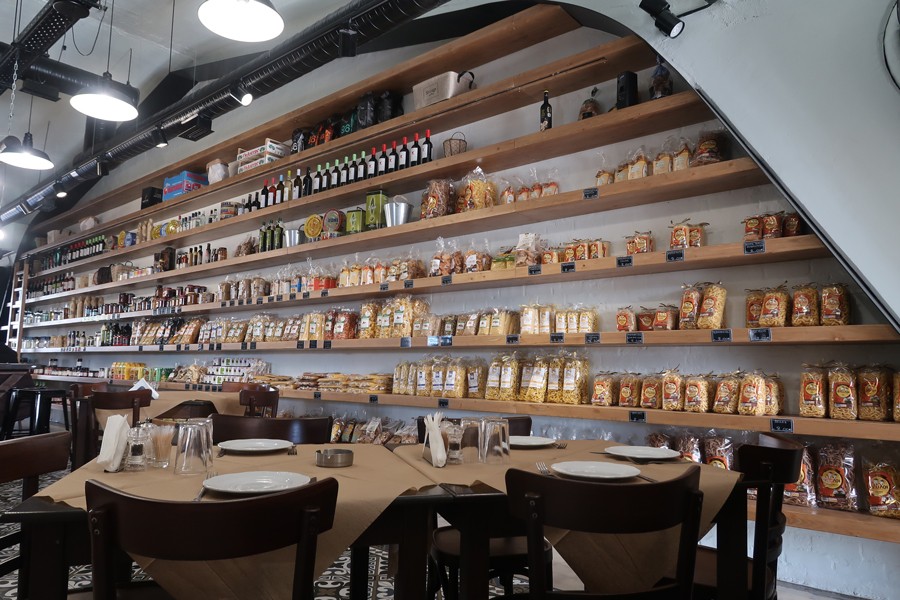 Μαύρη λαδομπογιά στις ψηλές μεταλλικές πόρτες με τα καντριγιέ παράθυρα, εμφανές τσιμέντο, βαμμένα τούβλα, ανοιχτόχρωμο ξύλο και παλιακά τσιμεντένια πλακάκια των αθηναϊκών μονοκατοικιών φτιάχνουν την εικόνα του μαγαζιού. Οι ιδιοκτήτες του οποίου, Πέτρος Μαρτσούκος και Γιάννης Χριστόπουλος, με πρόθεση να συμβάλουν στην εξωστρέφεια του ιστορικού χώρου, αποφάσισαν να στήσουν ένα παντοπωλείο που δίνει έμφαση στα τυριά και τα αλλαντικά, ενώ παράλληλα σερβίρει μεζέδες με πρώτες ύλες που προμηθεύονται κατευθείαν από την πηγή. Υπεύθυνοι για τη μετατροπή του παλιού βιομηχανικού χώρου είναι οι άνθρωποι του αρχιτεκτονικού γραφείου Mπάφης & Partners, που κατάφεραν να συνδυάσουν τη σύγχρονη αισθητική με το παρελθόν χωρίς να καταλήξουν σε αποτέλεσμα γραφικό.