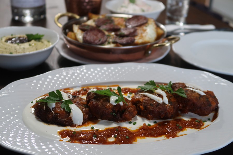 Τα πιάτα που δοκιμάσαμε από το μικρό και ευέλικτο μενού ήταν απροσδόκητα καλά, με καθαρές και στιβαρές γεύσεις. Μάθαμε ότι το έχει σχεδιάσει η νεαρή Μαρία Κοφίτσα (με προϋπηρεσία στην «Cookoovaya»), αλλά για την εκτέλεση υπεύθυνος είναι ο Στράτος Καραμανώλης. Οι κυδωνάτες τηγανητές πατάτες με αυγά μάτια και σουτζούκι ή παστουρμά θα γίνουν σίγουρα από τα best sellers του μαγαζιού. Τα «γιαουρτλού» κεφτεδάκια είναι ζουμερά και τρυφερά, η φάβα με τα καραμελωμένα κρεμμύδια καλή. Το χουνκιάρ μπεγιεντί θα μπορούσε να σταθεί σε καλό εστιατόριο με τη φινέτσα του, ενώ οι γίγαντες με το χωριάτικο λουκάνικο αναδίδουν τη ρουστίκ δύναμή τους.