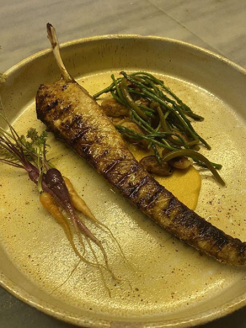 Παρατηρώντας το χειρόγραφο μενού, θα βρείτε περίτεχνες συνταγές, μαγειρεμένες με τον πιο απλό τρόπο, όχι παραπάνω από δέκα επιλογές. Ο σεφ παίζει δυνατά με τη φωτιά και την καταγωγή του από την Κρήτη και τον Πόντο, είτε στο χέλι με φλόγιστρο με μελάτο αυγό και κουνουπίδι, είτε στη σχάρα με τα «αχτύπητα» καραβιδάκια του, που καλό θα είναι να προκρατήσετε τηλεφωνικά (θα με ευχαριστείτε μετά). Πιάτα που μάλλον είναι στον «αφρό» και καθόλου στο «κατακάθι».