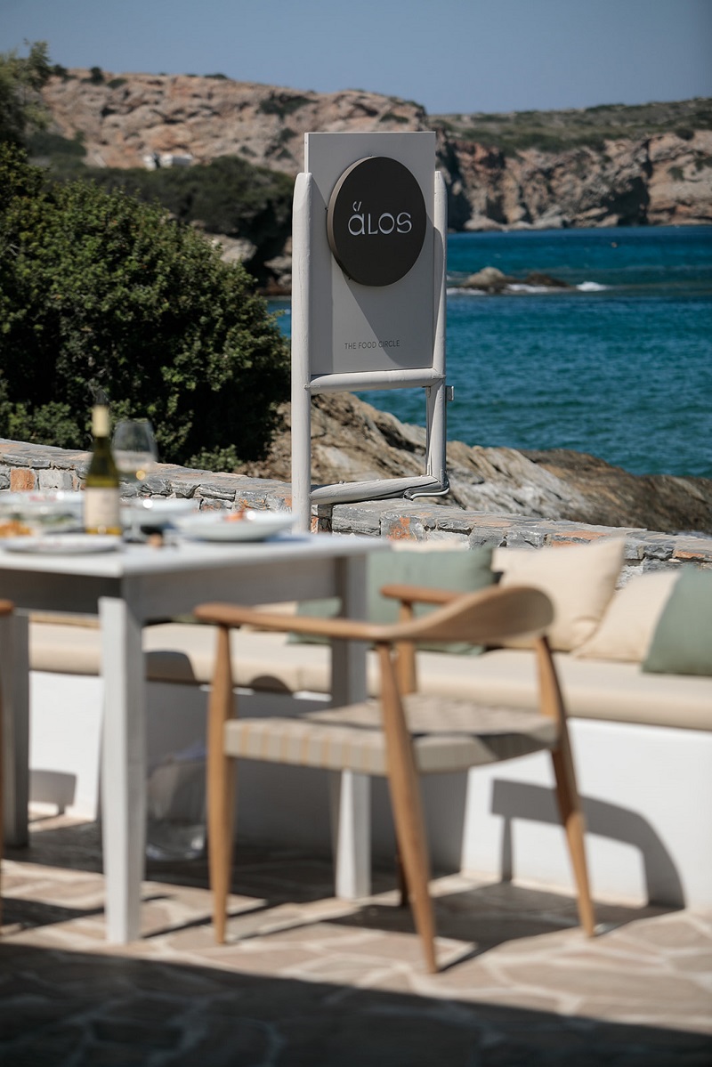 Έτσι, λοιπόν, οι ντομάτες, οι μελιτζάνες, τα αγγουράκια, τα κολοκυθάκια και άλλες εποχιακές λιχουδιές της ναξιώτικης γης που καταλήγουν στα πιάτα των πελατών του Alos, προέρχονται κατά ένα μεγάλο μέρος από τα μποστάνια της οικογένειας Κώτσου (υπάρχει ένα μικρό περιμετρικά των δωματίων του ξενοδοχείου και ένα μεγαλύτερο, στον Άη Λευτέρη όπου βρίσκεται και η φάρμα με ζώα), το ίδιο και οι ελιές και το ελαιόλαδο από τα δέντρα που πλαισιώνουν τα δωμάτια (εδώ το μάζεμα ξεκινά τον Οκτώβρη) ενώ τα ψάρια έρχονται κατόπιν συνεννόησης, από ψαροντουφεκάδες που βουτούν στις Μικρές Κυκλάδες (Κουφονήσια και Δονούσα). Εκτός από το μποστάνι και τις ελιές σε μία γωνιά του ξενοδοχείου υπάρχουν και ζώα (κουνέλια, κόκορες, κότες και λαγοί) τα οποία επίσης εξασφαλίζουν ένα κομμάτι των πρώτων υλών της κουζίνας, ενώ τη γαστρονομική «συμμορία» συμπληρώνουν οι ντόπιοι παραγωγοί: τυροκόμοι, κτηνοτρόφοι, ζυθοποιοί και μελισσοκόμοι.