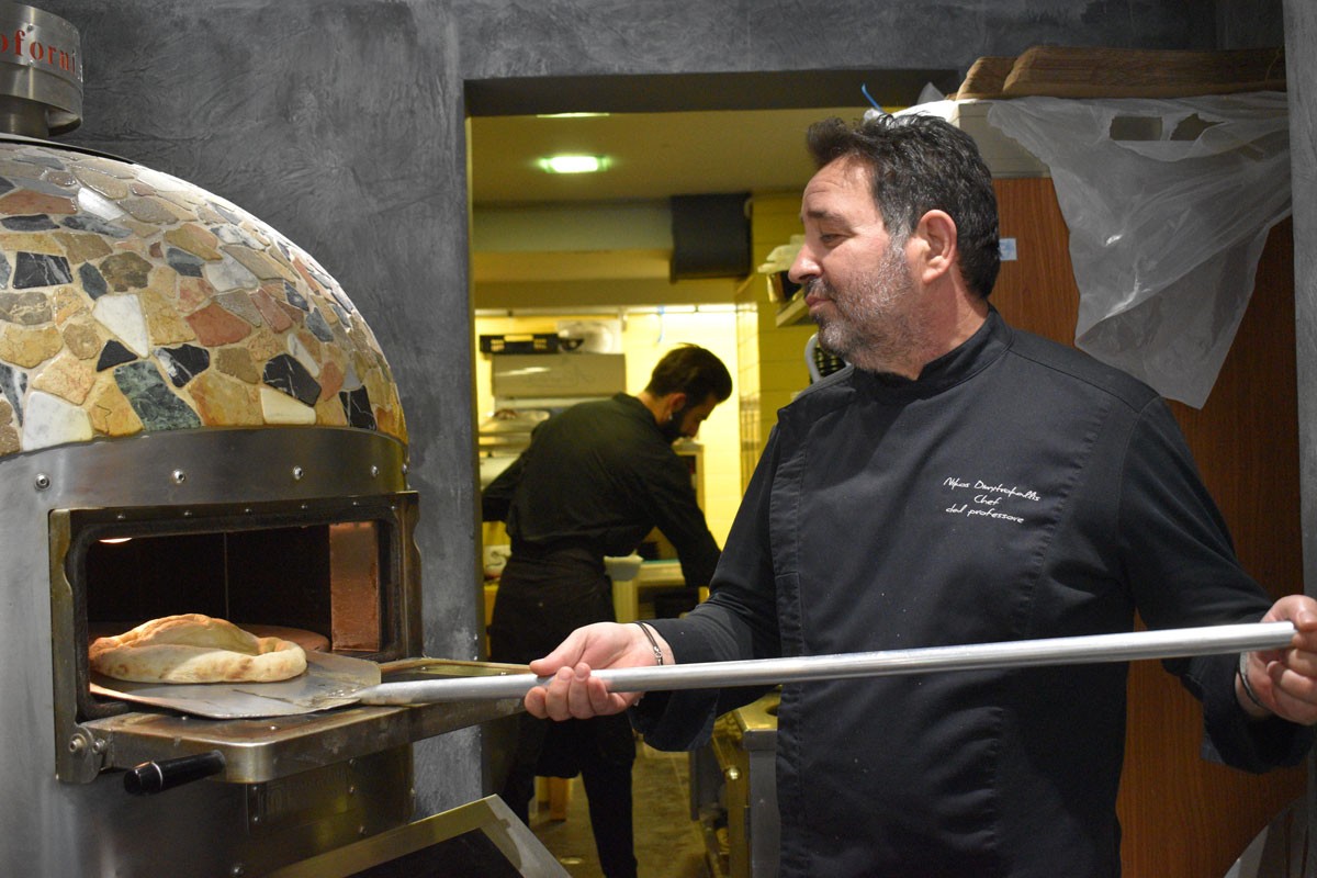 Ο σεφ Νίκος Δημητροκάλης ξεφουρνίζοντας τις περίφημες πίτσες του.