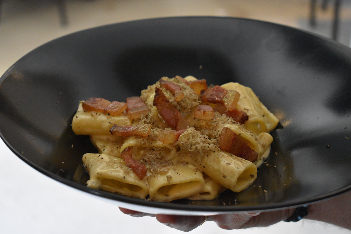 Ο σεφ αγαπά την τέχνη και αυτό φαίνεται σε κάθε γωνιά του εστιατορίου (πάνω), Carbonara ala tartufata (κάτω).