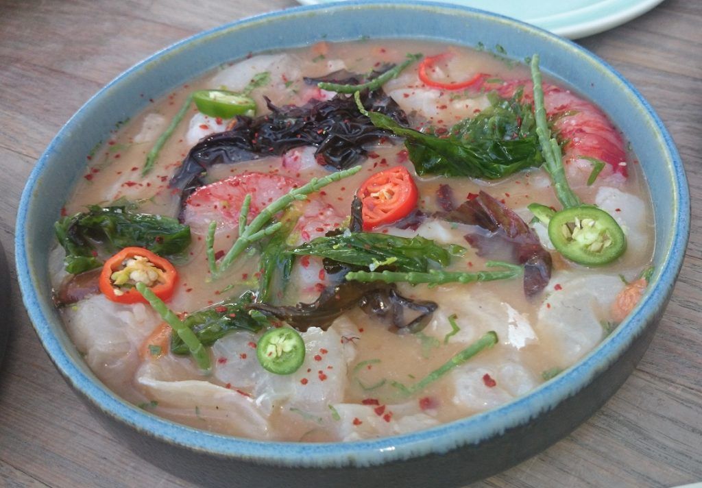 Στα ωμά, το aguachile φαγκρί με πέστο κόλιανδρου και πικάντικη salsa ήταν άψογα κομμένο, με ευχάριστα καυτερή γεύση. Αν έπρεπε, όμως, να ξεχωρίσουμε μόνο ένα από τα πιάτα, αυτό θα ήταν σίγουρα το tiradito Ω3 με ποικιλία από ψάρι, γαρίδα, χτένι και αχινό, που μας κέρδισε αρχικά με την εικόνα του -μιας και μοιάζει με ζωγραφικό πίνακα- και στη συνέχεια με τη νοστιμιά του. Ιδιαίτερη μνεία αξίζει στο ζωμό του, που πραγματικά δεν πρέπει να αφήσεις στο πιάτο τελειώνοντας τα θαλασσινά.