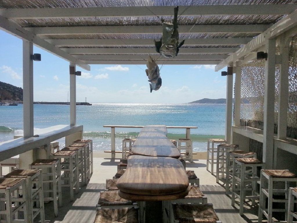 Η πρώτη εντύπωση από το χώρο; Μικρός ή καλύτερα μαζεμένος και ανεπιτήδευτος με ψηλούς ξύλινους πάγκους και ψηλά σκαμπό, όλα στον εξωτερικό χώρο ακριβώς δίπλα στην παραλία. Μοναδικό του «στολίδι», που αποκλείεται να μην τραβήξει το μάτι, τα ιδιαίτερα φωτιστικά σε σχήμα ψαριού. Σαν να λέμε ένα χαλαρό στέκι, στο οποίο μπορείς να έρθεις και αμέσως μετά το μπάνιο σου στη θάλασσα -ιδανικά έχοντας κάνει κράτηση- και στο οποίο ο μεγάλος πρωταγωνιστής είναι το φαγητό.