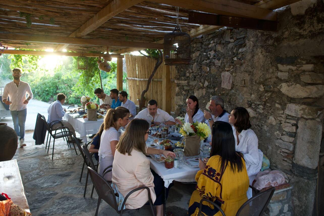 Εκεί, στη μέση του πουθενά, στο κτήμα Κάμπονες, βίωσα μια πρωτόγνωρη εμπειρία, όταν επισκέφτηκα το αγαπημένο μου νησί για την παρουσίαση του βιβλίου «Greek Islands» του Χρύσανθου Πανά -ενός ακόμη λάτρη της Νάξου. Την επομένη της παρουσίασης οι λιγοστοί προσκεκλημένοι δημοσιογράφοι, περιηγηθήκαμε στο κτήμα της οικογένειας Πολυκρέτη, το οποίο προσφέρεται για μαθήματα μαγειρικής και πριβέ γεύματα ελληνικής παραδοσιακής κουζίνας. Σε μια χωριάτικη αυλή, στον κάμπο (βλ. Κάμπονες), δίπλα από ένα μικρό αγροτόσπιτο του 16ου αιώνα, γευτήκαμε το πιο νόστιμο, το πιο αυθεντικό και το πιο ελληνικό φαγητό, που ήταν φτιαγμένο με μεράκι και αγάπη. Είναι το ίδιο αγροτόσπιτο που είχε επισκεφτεί και ο Άντονι Μπουρντέν, λίγο πριν φύγει από τη ζωή, κατά τη διάρκεια των γυρισμάτων της εκπομπής του «Parts Unknown». Η κυρία Ιουλία τον είχε μαγέψει με τις μαγειρικές της ικανότητες και την πηγαία απλότητά της. Όπως μάγεψε κι εμάς, αλλά και τον Χρύσανθο που της έδωσε στο πολυτελές βιβλίο του τη θέση που της αξίζει κι αυτή του το ανταπόδωσε χαρίζοντάς του μια από τις αγαπημένες της συνταγές.
