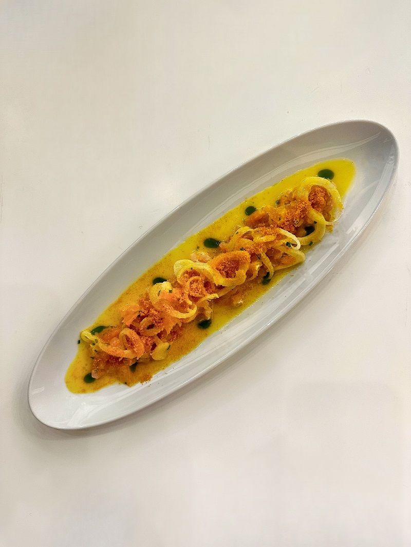 Την επιμέλεια του μενού έχει ο Γιάννης Λιόκας (Monzu), ενώ επικεφαλής της κουζίνας είναι ο στενός του συνεργάτης Αλέξανδρος Μηλιαράκης. «Δίνουμε τη δικιά μας οπτική στη σύγχρονη ψαροφαγία. Όσο για τις πρώτες μας ύλες, είναι πάντα ολόφρεσκες. Έχουμε δύο ψαράδες που κάθε βδομάδα μας φέρνουν ότι καλό προσφέρει η θάλασσα. Συνεργαζόμαστε, επίσης, με επώνυμους, γνωστούς για την ποιότητά τους, προμηθευτές», μου λέει ο Αλέξανδρος. Ο κατάλογος ανανεώνεται σύμφωνα με την εποχικότητα αλλά και τα… κέφια της κουζίνας.
