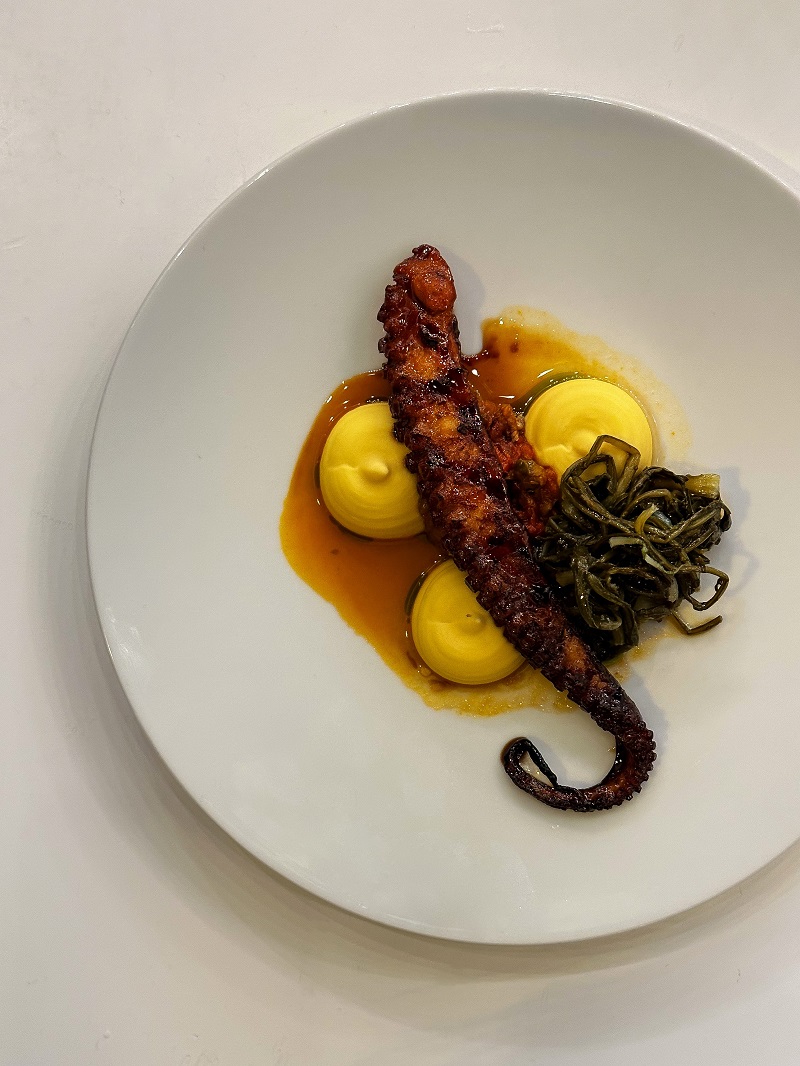 Πολλά ακόμα πιάτα πέρασαν από το τραπέζι μου αλλά ανάμεσά τους ξεχώρισα το ψητό καλαμάρι με σπαστή πατάτα, σάλτσα από πιπεριές jalapeño και το μελάνι του καθώς και το γιουβέτσι θαλασσινών (γαρίδες, χταπόδι και στρείδια) με άρωμα ούζου, ζωμό γαρίδας και φρέσκα μυρωδικά που έρχεται μελωμένο στο πήλινο. Σε αγαπημένο μου πιάτο αναδείχθηκε το όμορφα ψημένο και με φινετσάτη σπιρτάδα χταπόδι σχάρας με γλάσο ξιδιού, φάβα, χόρτα τουρσί και σάλτσα κάππαρης με πιπεριές Φλωρίνης.
