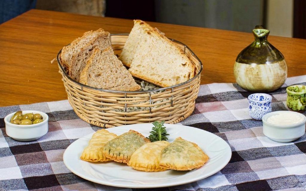 Στα ορεκτικά επιλέξαμε επίσης Μεσσαρίτικους κολοκυθοκεφτέδες (και φταις και δε φταις, το όνομα τους στον κατάλογο), με ωραία αρώματα μυρωδικών, καθώς και σπιτικά πιταράκια με χειροποίητο φύλλο και γέμιση από διάφορα χόρτα και μυζήθρα, που είναι η καλύτερη παρέα για το κρασί. Δίπλα τους δροσερή κρητική σαλάτα με μαρούλι, ντομάτα, πιπεριές, σταμναγκάθι, ελιές, κάππαρη, παξιμαδάκια και ξινομυζήθρα.