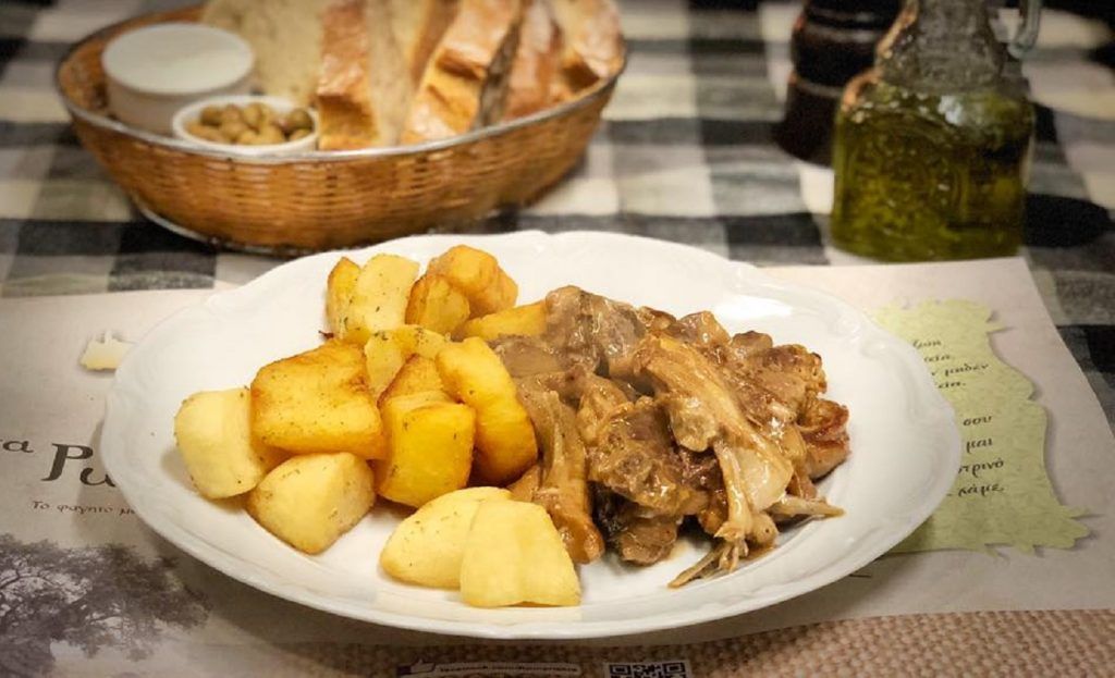 Στα κυρίως, δεν θα μπορούσαμε να μην δοκιμάσουμε το γαμοπίλαφο με ζυγούρι, ίσως το διασημότερο κρητικό πιάτο. Καλοβρασμένο κρέας και υπέροχα χυλωμένο πιλάφι με ελαφρώς λεμονάτη γεύση, όπως το έφτιαχνε και η μαμά μου στην Κρήτη (ναι, δεν πρόκειται για φαγητό που σερβίρεται μόνο στους γάμους, το κάνουν και στα σπίτια τόσο τις γιορτές όσο και τις καθημερινές). Και περνάμε στο ψητό ή μάλλον στο αντικριστό, που σιγοψήνεται στην ειδική ψησταριά και έρχεται στο τραπέζι παρέα με χοντροκομμένες τηγανητές πατάτες. Καλοψημένο, ζουμερό, χωρίς πολλά μπαχαρικά για να μην καλύπτεται η γεύση του κρέατος και με την πετσούλα του τραγανή. Το όνειρο κάθε κρεατοφάγου! Μάλιστα, σερβίρεται σε τρεις μερίδες: μονή μερίδα, μισό ή ένα κιλό, για να διαλέξεις την ποσότητα που σε καλύπτει ανάλογα με το πόσα πιάτα έχεις βάλει στο τραπέζι σου πριν, γιατί πραγματικά είναι ένα πιάτο που δεν πρέπει με τίποτα να παραλείψεις. Για το τέλος, μυζηθροπιτάκια σερβιρισμένα με μέλι και μία ρακή για τη χώνεψη…