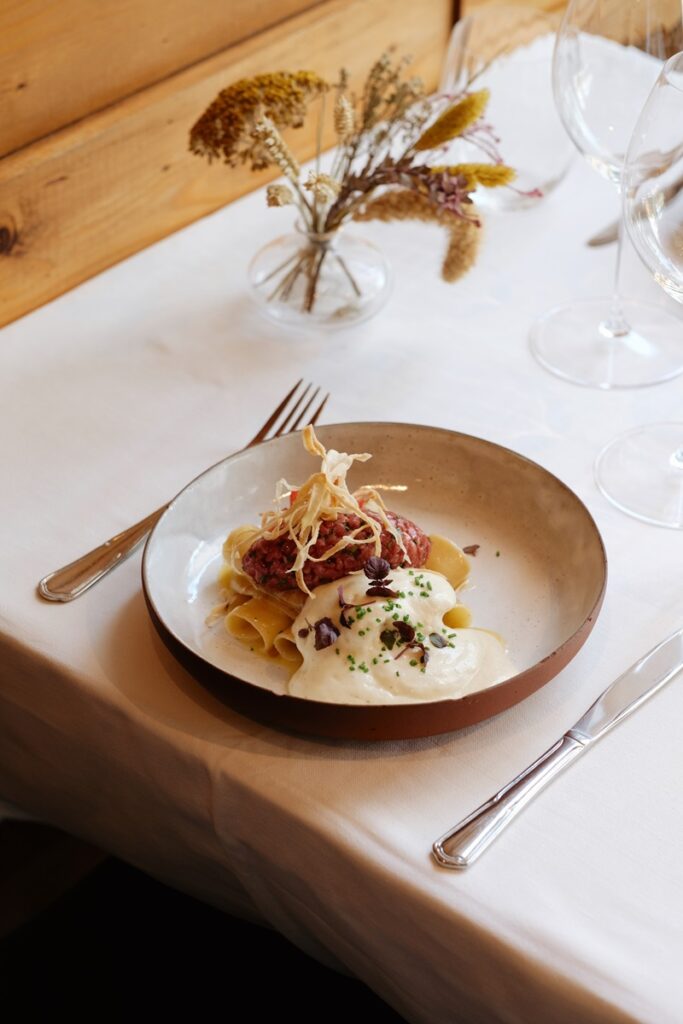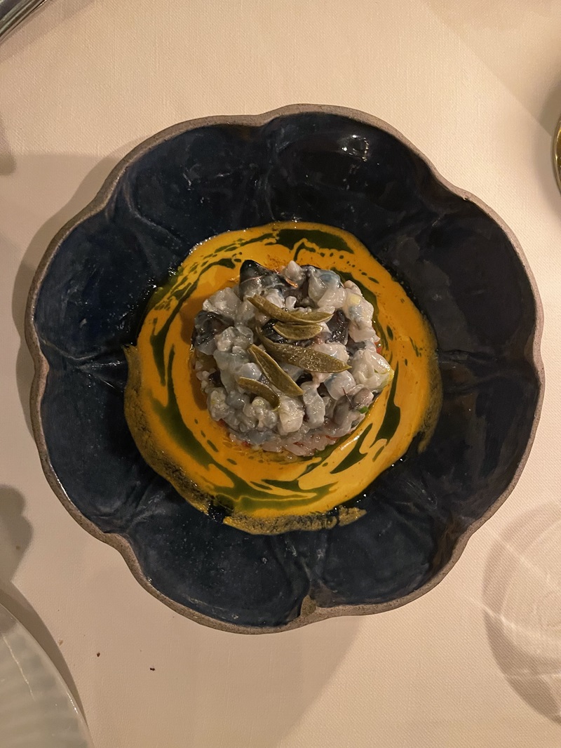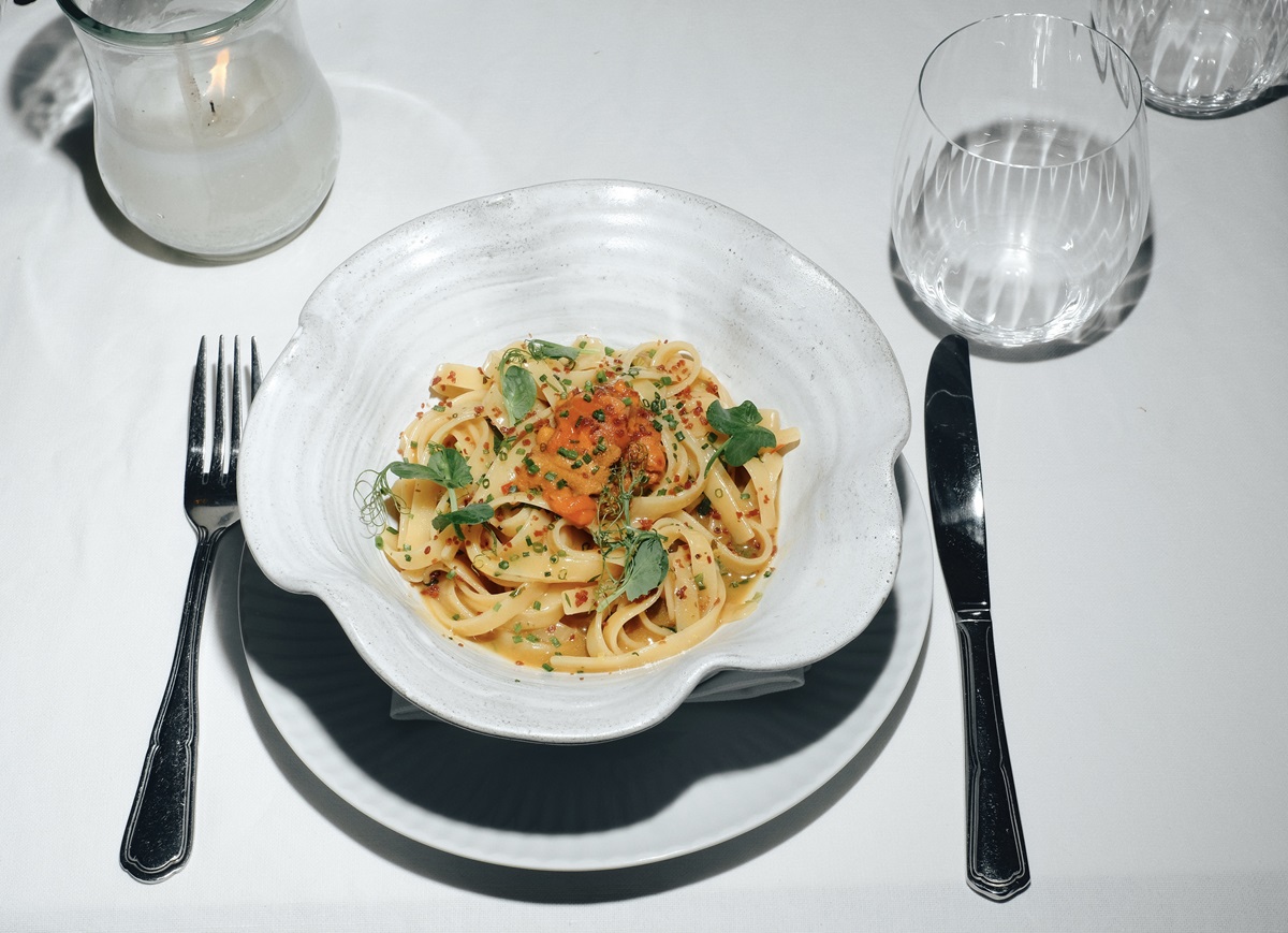Και αφού είστε ακόμα σε θαλασσινά μονοπάτια, τα χειροποίητα fettucce (ζυμαρικά), πάνω στα οποία τοποθετούνται κομμάτια από αχινό, περιχύνονται με καπνιστό ζωμό και πασπαλίζονται με κοκκινοπίπερο, είναι η πιο κατάλληλη συνέχεια. Πιάτο που είμαι σίγουρος ότι θα λατρέψετε τόσο για την απλότητά του όσο και για τη βαθιά νοστιμιά του.