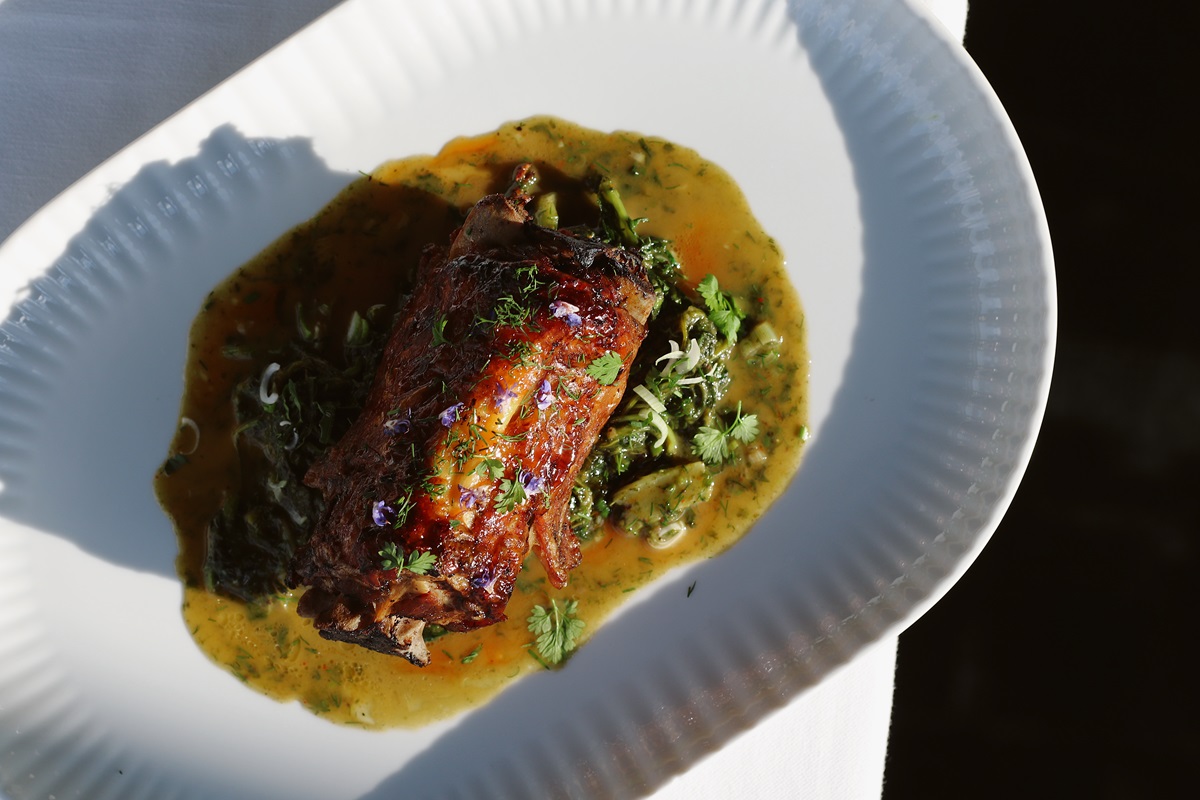Φυσικά, ο επίλογος ανήκει στο κρέας. Έτσι ο κατσικίσιος σβέρκος Βόνιτσας με άγρια χόρτα καθώς και το διάφραγμα με πικλαρισμένες αγκινάρες περασμένες στη σχάρα και πιπεριές padron, είναι δύο πολύ καλές επιλογές.