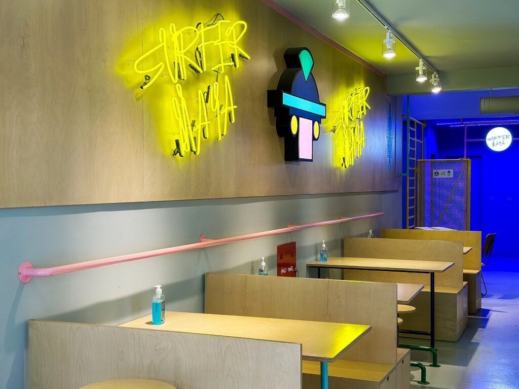 Η περίφημη ομάδα του Estrella – η Μαρία Σμπιλή, ο σύζυγός της Κώστας Καπετανάκης και ο αδερφός του, Γιάννης – εντυπωσιάζουν ακόμη μια φορά με την εφευρετικότητα και την τόλμη τους στον χώρο της εστίασης. Ήταν κατά τη διάρκεια της οικονομικής κρίσης που, έχοντας χάσει τις εργασίες τους, αποφάσισαν να ανοίξουν το Estrella, ένα μαγαζί με έμφαση στο ποιοτικό brunch που χειροκροτήθηκε ένθερμα από το διεθνή τύπο. Η πανδημία δεν πτόησε το μεγαλοφυές τρίο. Σκαρφίστηκε ένα ακόμη έξυπνο εγχείρημα, το Surfer Maya. «Κατά την περίοδο της καραντίνας σκεφτήκαμε να δημιουργήσουμε ένα high-end street food brand με υψηλής ποιότητας ελληνικά προϊόντα», μας λέει ο Κώστας. Η αρχική σκέψη λειτουργίας του σαν Ghost Restaurant, γρήγορα εγκαταλείφθηκε και αποφασίστηκε να ανοιχθούν στο κοινό οι πόρτες του πολύχρωμου και παιχνιδιάρικου μαγαζιού. Σύντομα έγινε στέκι των φίλων του νόστιμου και ποιοτικού street food που συνδυάζεται με ψαγμένα ποτά αλλά και μουσική. Ήταν, εξάλλου, το Surfer Rosa, το πρώτο άλμπουμ των Pixies, που έδωσε την έμπνευση για το όνομά του. Εναλλακτική ροκ η μουσική των Pixies, εναλλακτική και η πρόταση του Surfer Maya για το street food.