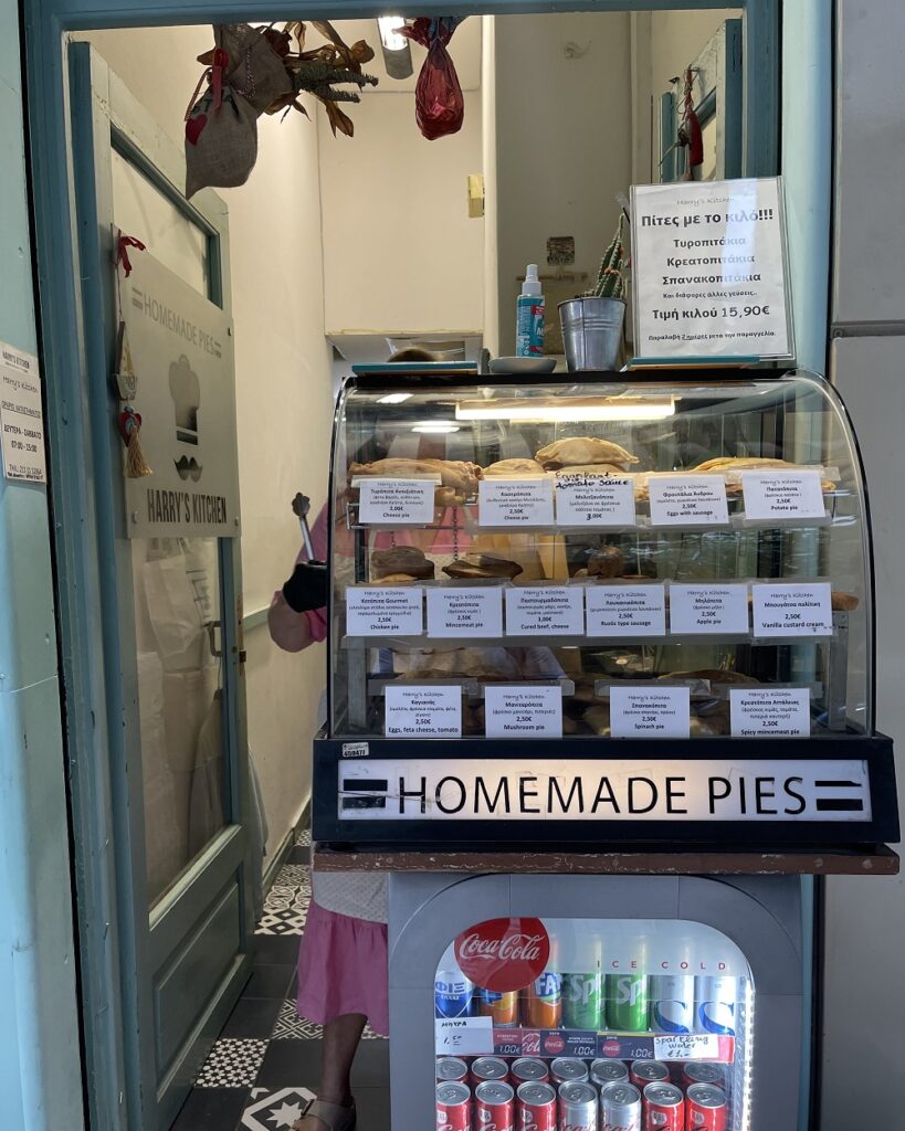 Και μιας και μιλάμε για κέντρο, θα σας πω για τις φανταστικές πίτες που φτιάχνουν στο Harry’s kitchen (Αθανασίου Αξαρλιάν 2, Σύνταγμα, τηλ. 2111152864). Μπορεί να έχετε περάσει από μπροστά του, αλλά να μην το έχετε δει αφού είναι πολύ μικρό, μόλις 11 τμ. Όμως το γλυκό, χαμογελαστό πρόσωπο της κυρίας Γιούλης, που στέκεται δίπλα στην λιλιπούτεια βιτρίνα δεν μπορείτε εύκολα να το ξεχάσετε. Ο σύζυγός της, Χάρης, ετοιμάζει από πολύ νωρίς το πρωί τις ζύμες και εκείνη τις γεμίζει για τις νόστιμες πίτες. Η ελαφρώς πικάντικη κιμαδόπιτα και η μανιταρόπιτα είναι αυτές που προτιμώ.