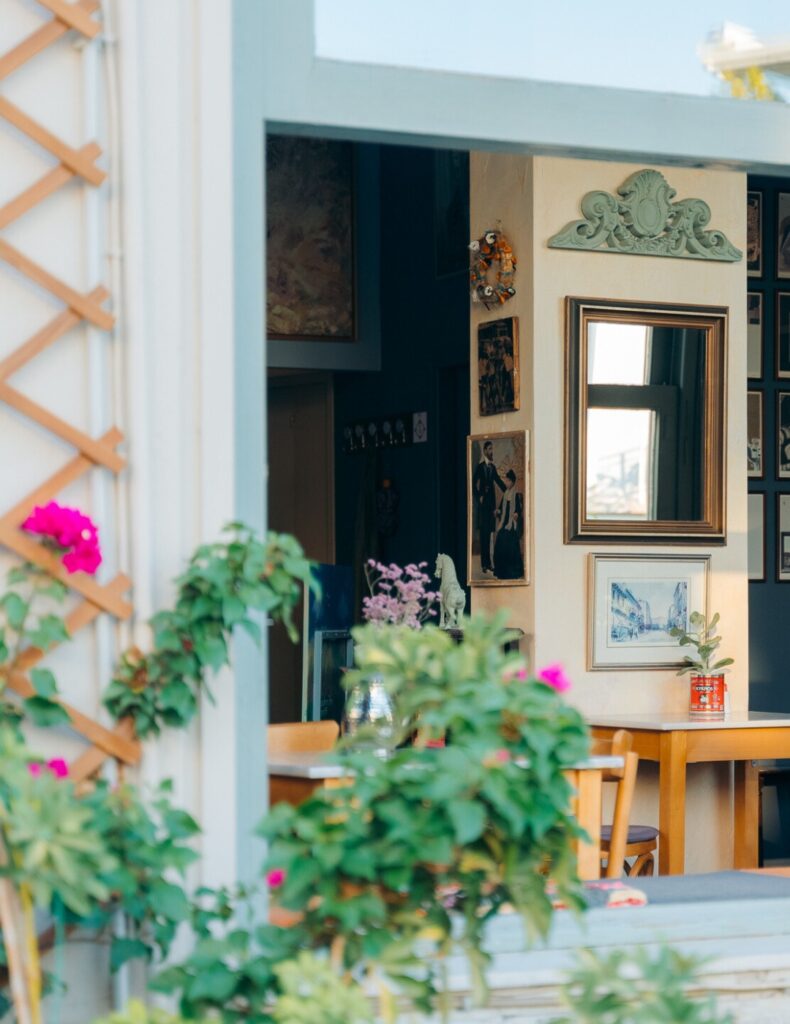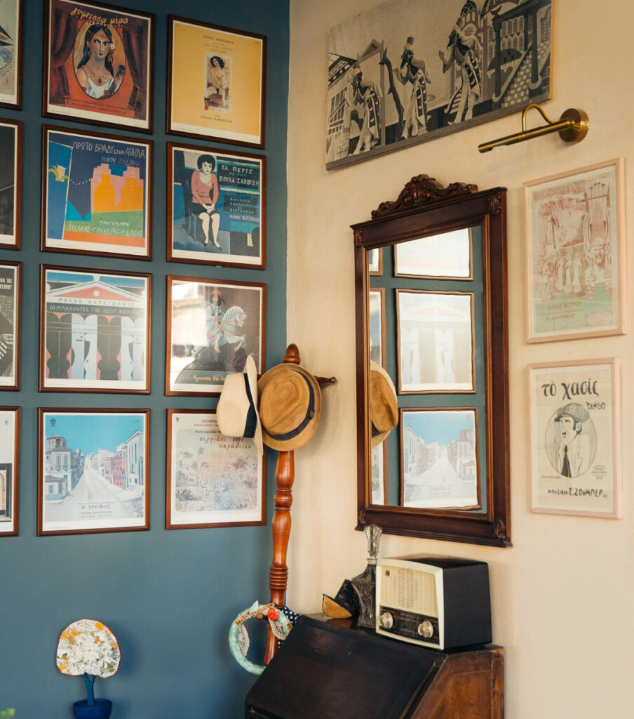 Εξωτερικά η όψη του ιστορικού κτιρίου έχει αποκατασταθεί χωρίς να έχουν αλλοιωθεί τα ιδιαίτερα αισθητικά χαρακτηριστικά του, μέσα τα μαρμάρινα τραπέζια συνδυάζονται με ξύλινες καρέκλες και οι τοίχοι είναι γεμάτοι με αυθεντικούς πίνακες Ελλήνων ζωγράφων, από Γιάννη Τσαρούχη μέχρι Ανδρέα Ιωαννίδη, και φωτογραφίες σπουδαίων μουσικών, όπως ο Μίκης Θεοδωράκης, ο Γιάννης Πουλόπουλος και ο Λευτέρης Παπαδόπουλος, επί το έργον. Το σκηνικό συμπληρώνουν έπιπλα αντίκες και συλλεκτικά αντικείμενα, όλα επιλογές της εικαστικού Ντόρας Ρίζου (σ.σ. μητέρα του Μιχάλη και ψυχή του Black Duck). Όσο για τη μουσική, ανάλογα την ώρα, μπορεί να παίζει πειραγμένα ρεμπέτικα, τζαζ, Χατζηδάκι κ.ά. χρωματίζοντας ευχάριστα την ατμόσφαιρα. Το πιο μαγικό σημείο βέβαια, ανεξαρτήτως εποχής, είναι το έξω: γλαστράκια που μοσχοβολάνε, ολάνθιστα φυτά, σκιά από τα δέντρα, ήλιος και δροσερός αέρας, θέα Ακρόπολη, σκέτος παράδεισος!