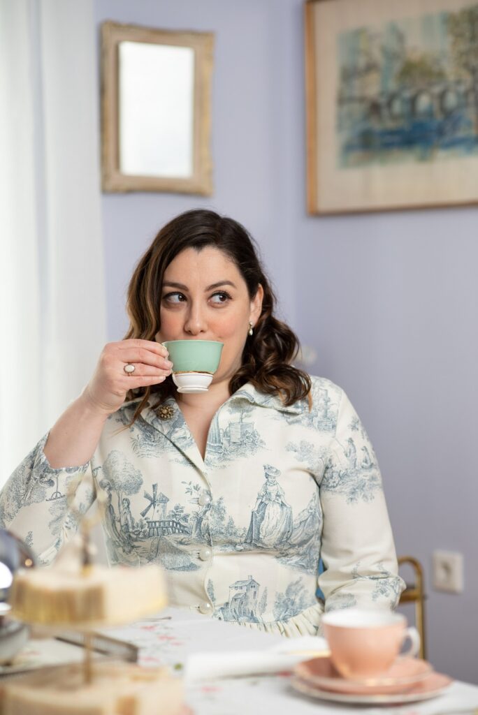 Εδώ πρέπει ίσως να διηγηθώ εν συντομία της ιστορία της Madame Gâteaux, της Κυρίας των Γλυκών. Έτσι ονόμασε την περσόνα που επινόησε η Καλλιόπη Αναγνωστή για να ερμηνεύσει με διάφορους τρόπους τη μεγάλη της αγάπη της για τη ζαχαροπλαστική. Την ονειρεύτηκε ως μια κυρία της δεκαετία του ’50, που αγαπάει τα φλοράλ φορέματα, τα παστέλ χρώματα και της αρέσει να στολίζει τον χώρο της με φρέσκα λουλούδια. Η περσόνα της θα πρέπει να μην απείχε πολύ από την προσωπικότητά της γιατί συναντώντας την για πρώτη φορά ένιωσα πως η ταύτιση τους είναι τέλεια. Η Καλλιόπη Αναγνωστή, αγγλο-σπουδαγμένη σεφ – ζαχαροπλάστισσα, τελείωσε τη σχολή Le Cordon Bleu, αλλά πριν επιστρέψει στην Ελλάδα εργάστηκε σε σημαντικά εστιατόρια και σε ξενοδοχεία του Λονδίνου. Ανάμεσα τους θα αναφέρω το πολυκατάστημα Harrods, καθώς και το πεντάστερο Savoy Hotel – που φημίζεται για το ιστορικό tearoom του, το κομψό Thames Foyer, το οποίο λειτουργεί από το 1889, σερβίρει το εμβληματικότερο afternoon tea και high tea του κόσμου, με θέα στον Τάμεση, και αποτελεί υπόδειγμα αγγλικής κομψότητας.