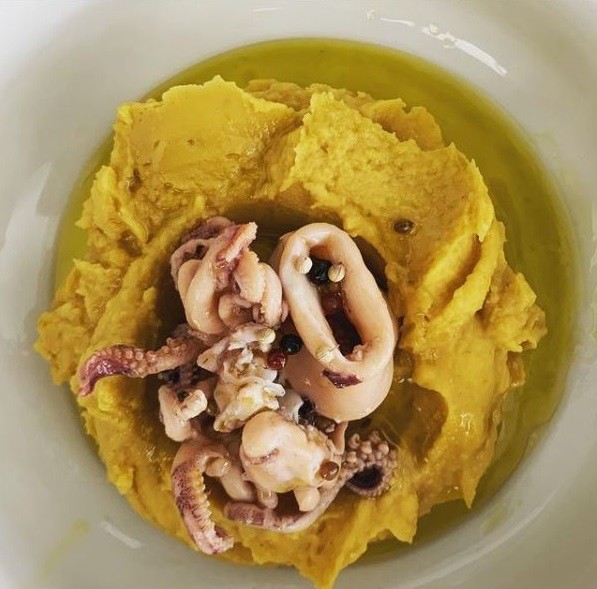 Ξεκινήσαμε μια σαλάτα μαραθόριζα, που με το ανακάτεμα ενσωμάτωσε την παστή σαρδέλα της και το λαδόξιδο και ξαφνικά έβγαλε… αλητεία. Κάπως έτσι εκτυλίχθηκε όλο το δείπνο, ακολουθώντας ένα επαναλαμβανόμενο κρεσέντο-ντεκρεσέντο εντάσεων. Στις πιο χαμηλές συγκαταλέγεται το λιχούδικο, φουρνιστό σπανάκι με φρέσκια ελληνική γαρίδα, μπεσαμέλ και παρμεζάνα, που θύμιζε τα γκρατέν των μαμάδων μας, η φάβα Σχοινούσας με το (αχνά ξιδάτο) καλαμάρι τουρσί, τα τσιγαριαστά χόρτα με ντομάτα και φέτα Κεφαλονιάς και το κερκυραϊκό μπιάνκο με ντόπιο φρέσκο μπακαλιάρο. Στις πιο ψηλές κατέταξα το πικάντικο λεμονάτο γιουβέτσι, με χωριάτικο λουκάνικο Τήνου, βοδινό λουκάνικο του Μιράν και γυλωμένη μανούρα Σίφνου και τον πιο έντονο, αλλά συνάμα πολύ γευστικό αρνίσιο πατσά, γιαχνί με τα δύο του τσορίθο που μετέδιδαν, διακεκομμένα σαν σε αλφάβητο Μορς, την καυτερή τους πληροφορία (καθαρότερα από το κλασικό μπούκοβο), αφήνοντάς σου πεδίο να αντιληφθείς τη μεταξένια υφή της κοιλιάς. Απ’ όλα τα πιάτα, όμως, ξεχώρισα την προβατίνα σάρτσα με το ζακυνθινό λαδοτύρι και τις χυλοπίτες Αράχωβας λόγω της σχεδόν “ακατέργαστης”, άχρονης και δωρικής της νοστιμιάς.