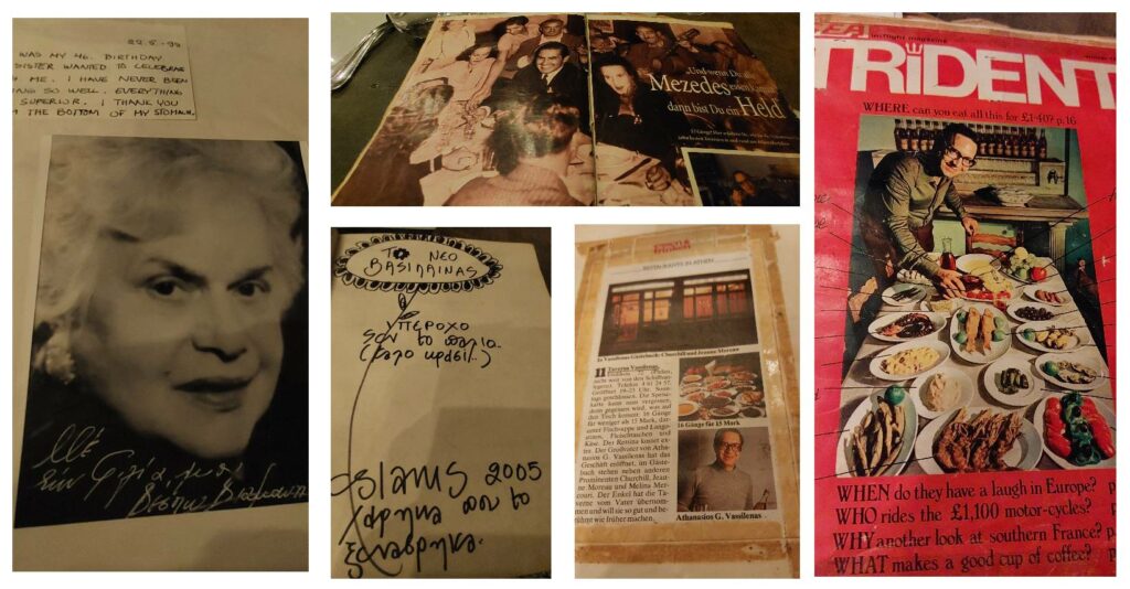 Στο τέλος της βραδιάς μας περίμενε μια ευχάριστη έκπληξη! Είχαμε την ευκαιρία να ξεφυλλίσουμε το βιβλίο επισκεπτών με συλλογές από αφιερώσεις πελατών από όλων των κόσμο, αλλά και δημοσιευμάτων που μας ταξίδεψαν πίσω στον χρόνο. Θα χρειαζόταν μέρες για να μελετηθεί αυτό το πολύτιμο υλικό που έχουν διαφυλάξει οι ιδιοκτήτες.