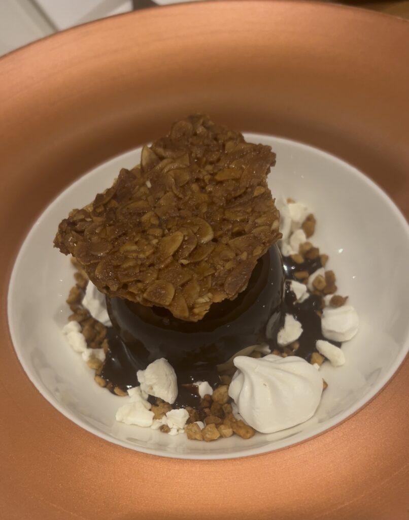 Τέλος, τα μοσχαρίσια μάγουλα με πουρέ μελιτζάνας, κρέμα παρμεζάνας και τηγανητή πατάτα: ένα πιάτο που βλέπουμε να κυριαρχεί σε μενού, εδώ το βρίσκουμε σε μια άρτια εκτέλεση. Τρυφερό μοσχάρι, με τη μελωμένη σάλτσα να δένει το σύνολο χωρίς υπερβολές. Ο πουρές μελιτζάνας είναι ελαφριά καπνιστός, δίνοντας στον πουρέ γευστικό βάθος, ενώ η πατάτα έρχεται φρεσκοτηγανισμένη, λειτουργώντας υποστηρικτικά στο πιάτο.
