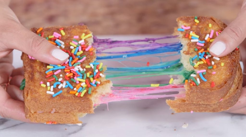 Στο site Popsugar.com δημοσίευσαν ένα βίντεο για το πώς φτιάχνεται το διάσημο «rainbow grilled cheese», δίνοντας παράλληλα και τη συνταγή για να το φτιάξει κάποιος στο σπίτι. Γιατί όπως θα διαπιστώσετε, είναι ασφαλές προς κατανάλωση μιας και τα διαφορετικά χρώματα του τα παίρνει από απλό χρώμα ζαχαροπλαστικής, που βρίσκουμε και στα ράφια των σούπερ μάρκετ.