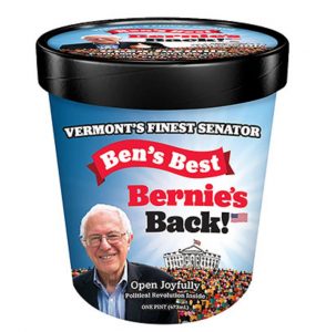 Ο συνιδιοκτήτης των διάσημων παγωτών Ben & Jerry’s, Ben Cohen διατηρεί και μία ιδιωτική μάρκα παγωτών, τα Ben’s Best, που οι συσκευασίες τους όμως θυμίζουν πολύ εκείνες των Ben & Jerry’s. Μέσω αυτής της μάρκας λοιπόν, δημιούργησε μία νέα γεύση, την «Bernie’s Back», προς τιμήν της προεκλογικής καμπάνιας του γερουσιαστή του Βερμόντ.
