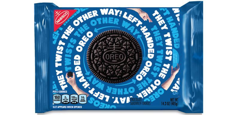 Στις 13 Αυγούστου, ανήμερα δηλαδή της Παγκόσμιας Ημέρας Αριστερόχειρων, τα Oreo καλωσόρισαν ένα νέο μέλος στην ήδη μεγάλη τους οικογένεια: Τα limited edition Oreo για αριστερόχειρες! Η συσκευασία ανοίγει από τη δεξιά πλευρά, αντί για την αριστερή, ώστε το 10% του πληθυσμού, που δεν γράφει με το δεξί χέρι, να μπορe;i να απολαμβάνει με μεγαλύτερη ευκολία το αγαπημένο του σνακ.