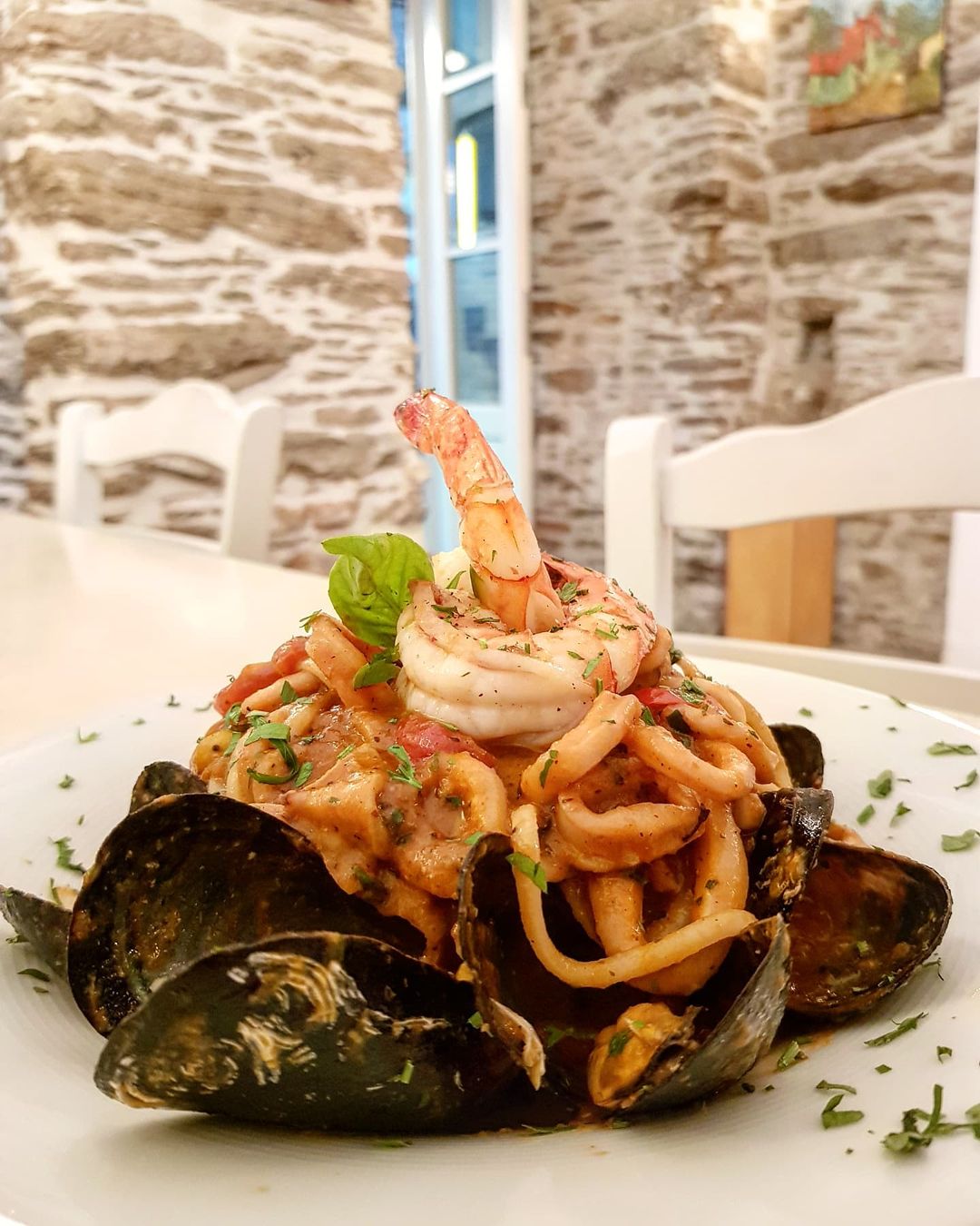 Μία στάση στην ιστορική χώρα της Άνδρου είναι κάτι παραπάνω από απαραίτητη. Μετά την πολιτιστική βόλτα σε Αρχαιολογικό και Μουσείο Σύγχρονης Τέχνης Μουσείο, η Ενδοχώρα μας περιμένει. Στον κεντρικό πεζόδρομο, στο επίκεντρο – όπως φανερώνει και το όνομα της. Από το μενού ξεχωρίζουν το χειροποίητο παστίτσιο, ένα πιάτο μαμαδίστικης φροντίδας, αλλά και τα αλλιώτικα μεσογειακά πιάτα, όπως το ριζότο με μπριάμ και ελαφρώς ξινό τυρί από το νησί και η βουνίσια σπαγγέτι φτιαγμένη με τοπικά προϊόντα. Στις κλασικές επιλογές, η Ενδοχώρα προσφέρει ζουμερή ταλιάτα, αρνίσιο κότσι που λιώνει στο στόμα και καλοψημένο χταποδάκι. Το δείπνο ολοκληρώνεται με το σωστό φίλεμα που περιλαμβάνει σφηνάκια μαστίχας ή σουμάδα.