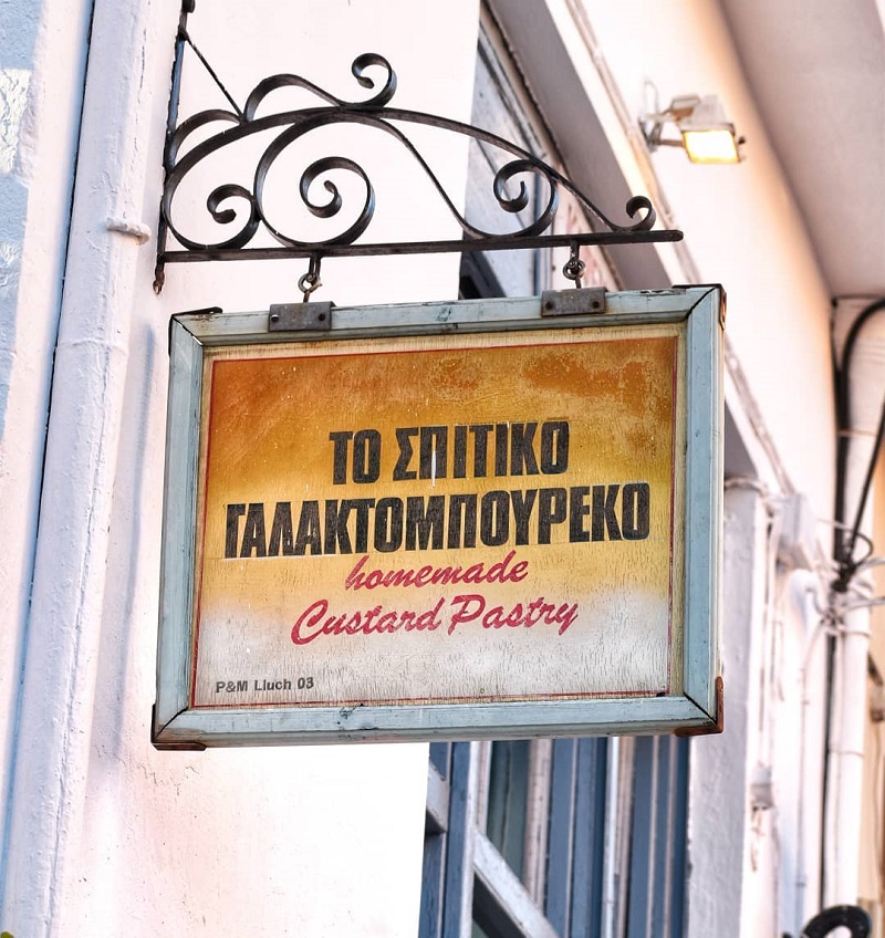 Πάνω στο δρόμο, το πρώτο καφενείο που συναντάς είναι αυτό του Γαλάνη, που τώρα το λειτουργούν η γυναίκα του και τα παιδιά τους. Η κυρία Κατερίνα ξεφουρνίζει όλη μέρα το διάσημο γαλακτομπούρεκό της, που είναι ζεστό, αφράτο και πεντανόστιμο. Σου βάζει και μια ρακί για να ισορροπήσει τη γλύκα του με την οξύτητα του αποστάγματος και σε προκαλεί να της πεις αν έχεις δοκιμάσει πουθενά αλλού τόσο νόστιμο γλυκό. Και η αλήθεια είναι ότι δεν έχεις. Τα ξεπερνά όλα. Ακόμα και αν δεν είσαι φαν του συγκεκριμένου σιροπιαστού, όπως εγώ, σε κάνει να γίνεις.