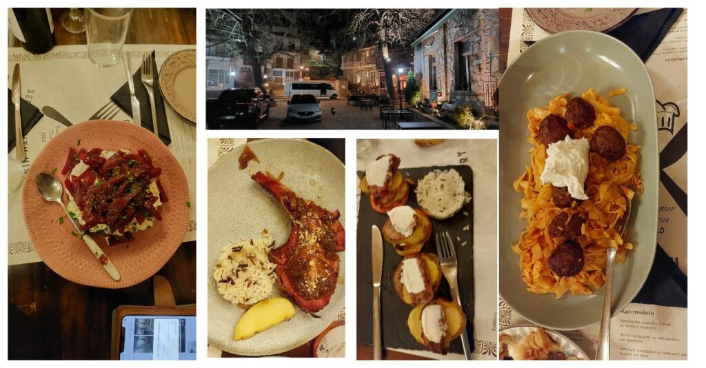 Ένας πολύ όμορφος και ζεστός χώρος στην πλατεία του χωριού στα Κανάλια Καρδίτσας.Εκεί μας υποδέχτηκαν οι ιδιοκτήτες που μας πρόσφεραν ένα πλούσιο γεύμα, το οποίο πλαισίωναν τα κρασιά από τον βιολογικό ελαιώνα Κοντοζήση. Από τις σαλάτες, την προτίμησή μου κερδισε αυτή με τα παντζάρια. Στα κυρίως, ήταν πολύ νόστιμες οι χειροποίητες χυλοπίτες με μοσχαρίσια κεφτεδάκια, αλλά και τα πυργάκια με ψαρονέφρι, πατατούλα και κατίκι Δομοκού (και ωραία γεύση και όμορφο σερβίρισμα). Αλλά το πιάτο που μου άρεσε περισσότερο γευστικά ήταν η καπνιστή μπριζόλα με τα καραμελωμένα κρεμμύδια. Όταν μιλήσαμε με τους ιδιοκτήτες, μας είπαν ότι είναι η 4η γενιά που διατηρεί το μαγαζί, ενώ έχουν και κάποια δωμάτια. Το σημείο είναι αρκετά κομβικό καθώς βρίσκεται σε πολύ κοντινή απόσταση από τα Τρίκαλα, το Περτούλι και τα Μετέωρα.