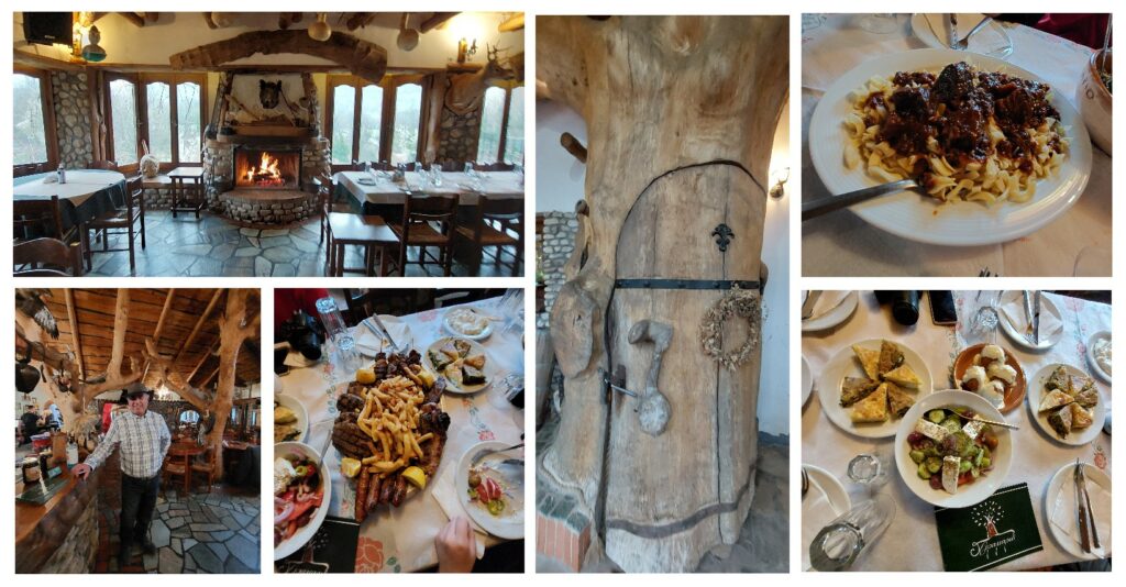 Μια κρύα και βροχερή μέρα κι ενώ βιαζόμασταν να πάρουμε τον δρόμο της επιστροφής προς Αθήνα βρεθήκαμε στο Κεραμαριό. Κι ενώ σκοπεύαμε να μην κάτσουμε για φαγητό, τελικά μας κέρδισε ο ιδιαίτερος χώρος, ο εκκεντρικός και φιλόξενος ιδιοκτήτης και φυσικά το πεντανόστιμο φαγητό. Είναι ένα μέρος όπου θα θέλετε να ξαναγυρίσετε όταν το επισκεφθείτε. Η περιπέτεια ξεκινά από την είσοδό μας. Η πόρτα του μαγαζιού είναι μια εμπειρία από μόνη της: είναι μια ειδική κατασκευή από κανονικό δέντρο. Ανοίγεις την πόρτα και μπαίνεις μέσα στον κορμό του! Και στη συνέχεια το σαφάρι ξεκινά! Στη διακόσμηση κυριαρχούν τα δέντρα και τα βαλσαμωμένα ζώα, ενώ ο ιδιοκτήτης μάς υποδέχτηκε φορώντας το καουμπόικο καπέλο του, απόλυτα εναρμονισμένος με τη διακόσμηση, η οποία άλλωστε αποτελεί και προσωπική του επιλογή. Στην κουζίνα η σύζυγός του και ο ένας του γιος, στο σέρβις ο άλλος του γιος. Τα πιάτα, με υλικά και κρέατα της περιοχής, έβγαζαν μια νοστιμιά σπιτικού φαγητού. Επειδή βιαζόμασταν, το τραπέζι μάς περίμενε στρωμένο και γεμάτο καλούδια, ενώ το τζάκι έκαιγε και ζέσταινε τον χώρο. Πολύ ωραία τόσο η ιδέα όσο και η εκτέλεση στους κεφτέδες μανιταριού, που αξίζει οπωσδήποτε να δοκιμάσετε όταν βρεθείτε! Αυτό όμως που με ενθουσίασε ήταν το κοκκινιστό μοσχαράκι με την ιδιαίτερη επιλογή ζυμαρικών (όχι ντόπιων). Οι πιτούλες -που κυριαρχούν σε όλα τα θεσσαλικά τραπέζια- ήταν πολύ νόστιμες, με ντόπια χόρτα (ή αλλιώς λάχανα) και σπιτικό φύλλο σε στρώσεις. Ο κύριος Από το παράθυρο φαίνονται τα ελάφια που εκτρέφει στον κήπο (μετά δυστυχώς κάποια τα μαγειρεύει, είναι από τις σπεσιαλιτέ του που δεν δοκιμάσαμε), αλλά και τα δωμάτια που διατηρεί. Ωραία επιλογή να επιλέξετε τα καταλύματά του (είναι πλήρως εξοπλισμένα σπιτάκια), καθώς η περιοχή -σε υψόμετρο 600μ, είναι γεμάτη πράσινο και νερά, απέχει 40 χλμ από Καρδίτσα, 50 χλμ από τη λίμνη Πλαστήρα αλλά και 30 χλμ από Τρίκαλα.